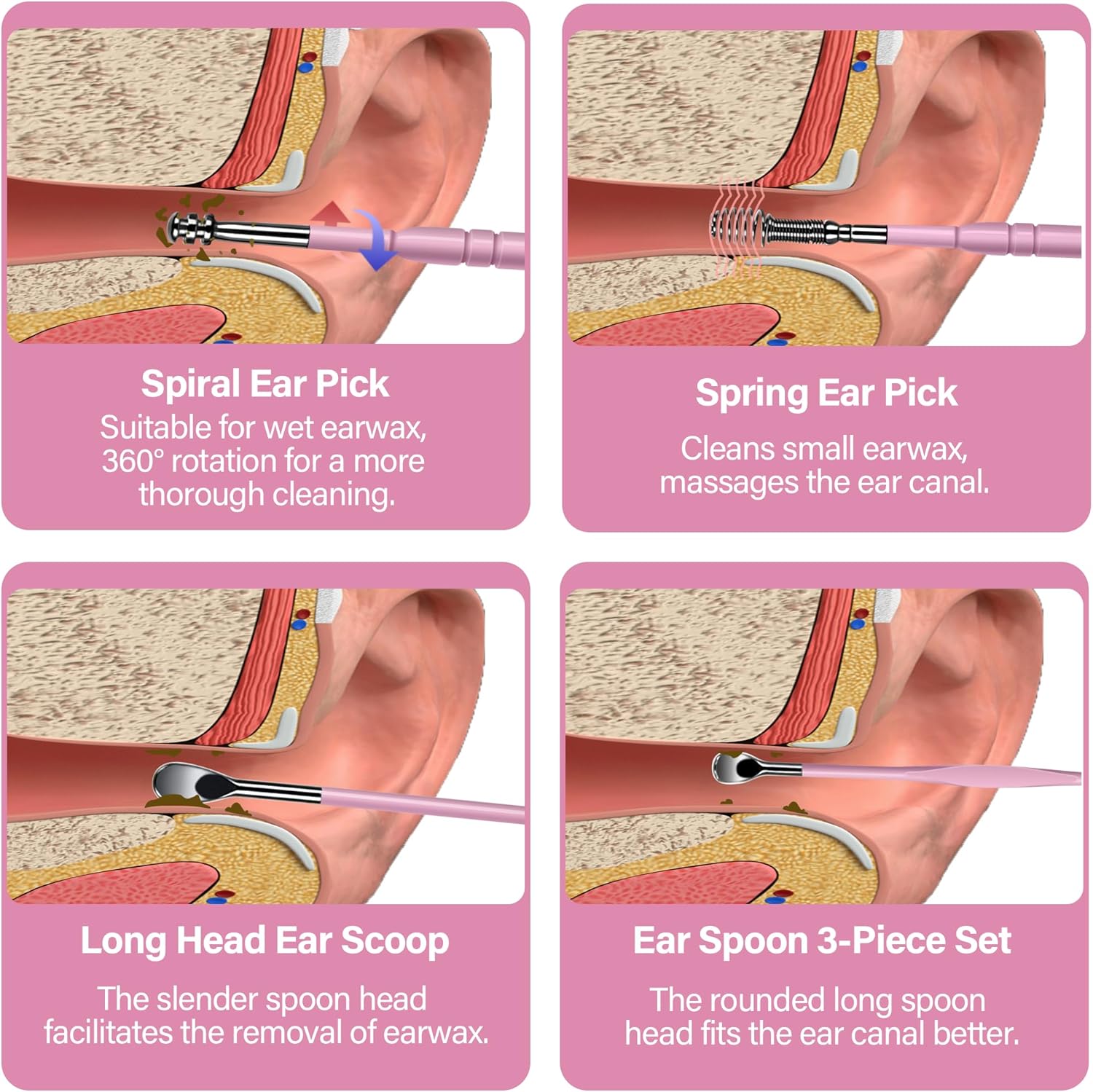 - Ear Wax Removal Tool For The Whole Family: Our carefully designed ear wax removal kit with light is suitable for family members of all ages. From a soft spoon head that cares for children's delicate ears to a precise tool for adults' deep cleaning, this ear wax removal tool with light will bring you an unprecedented ear care experience