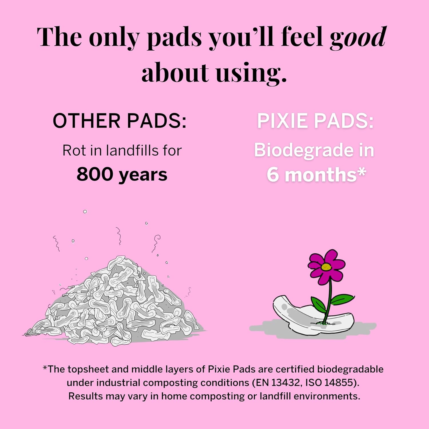 - MADE WITH CARE. Pixie Pads are made with 100% Certified Organic Cotton covers to give you all-natural leak-free protection.