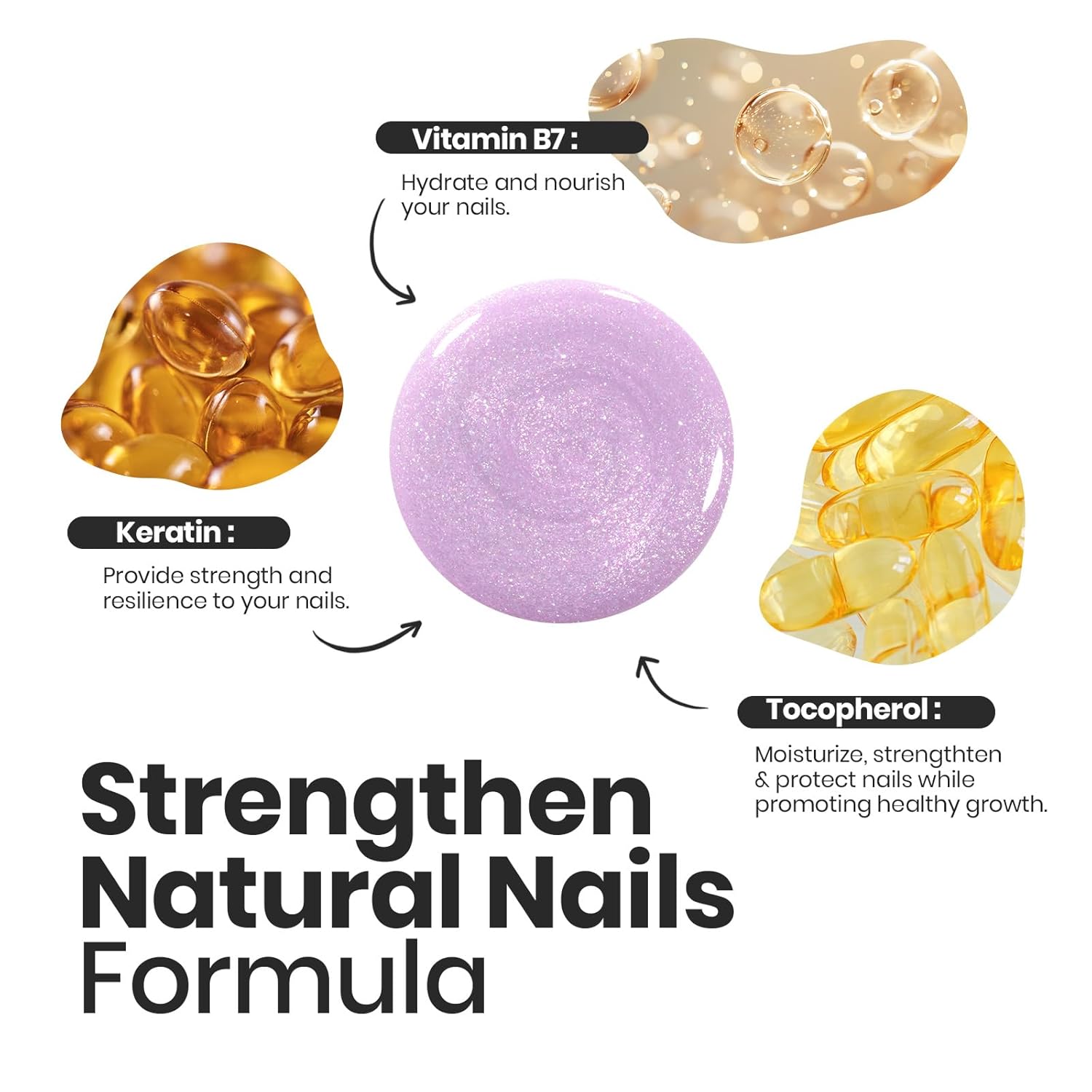 - Strengthen While You Shine: Enriched with keratin, biotin, and vitamin E, our fast dry nail polish gives your nails vibrant color, reduces breakage, promotes growth, and nourishes cuticles while repairing them. This advanced formula will help brittle nails look new and shiny with every use!