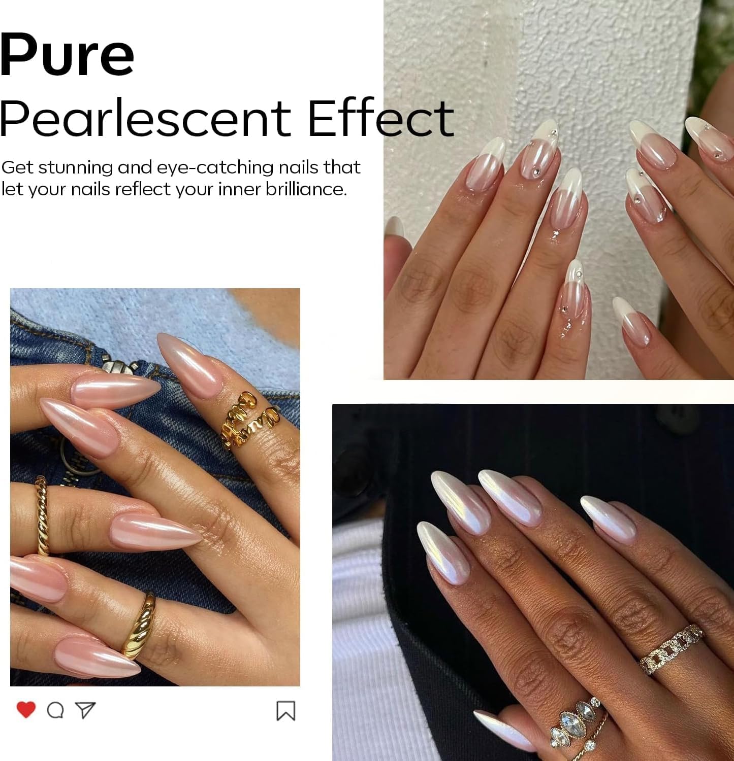 - Different Base Different EffectsďźChrome powder for nails set can be used with a variety of gel polishes to produce a variety of unicorn chrome nail powder.tips: unique mirror effects can be achieved by adjusting the angle,using different lighting techniques or using different gel base colours.Magic nail shimmer powder versatile kit offers six unique shades to create a variety of effects such as water ripples,french nails,two-colour designs,shells,mirrors and more.