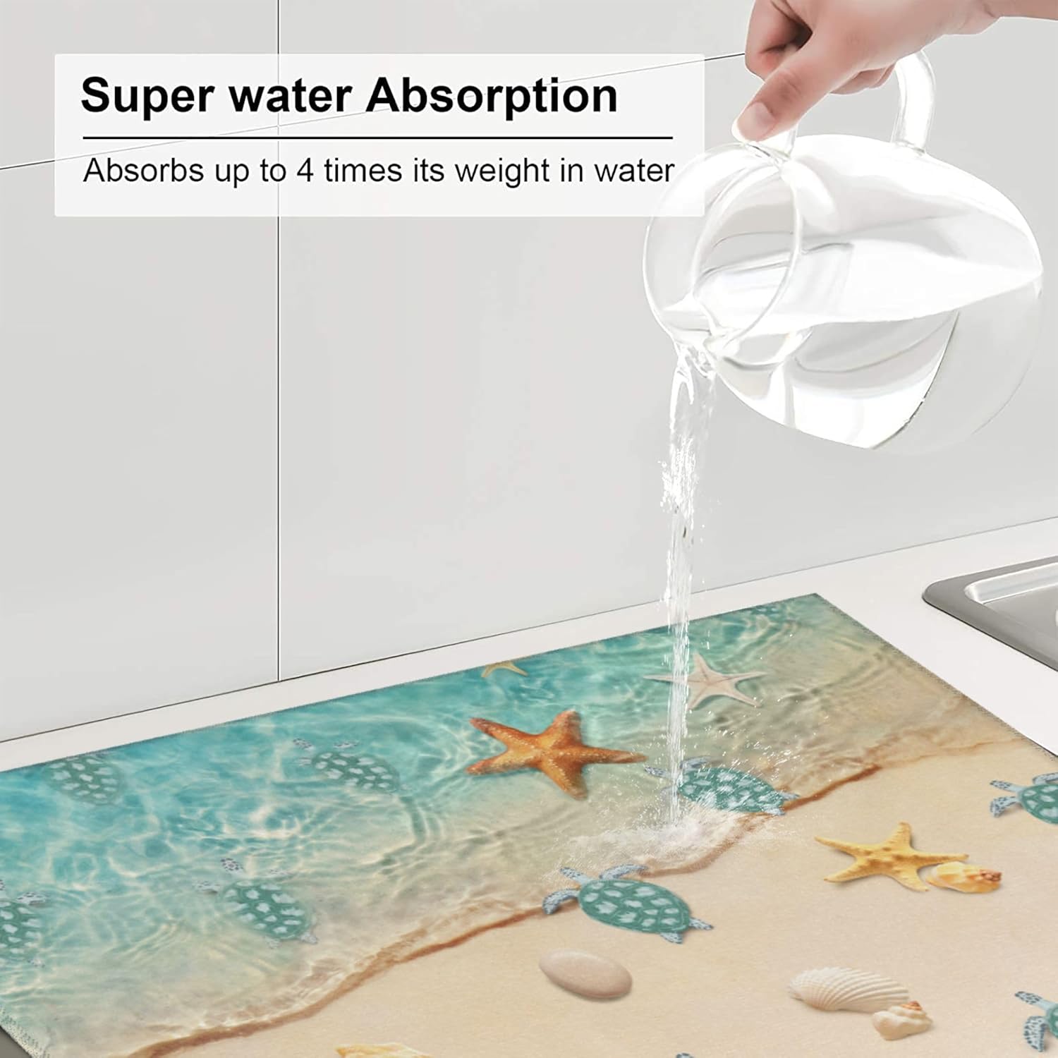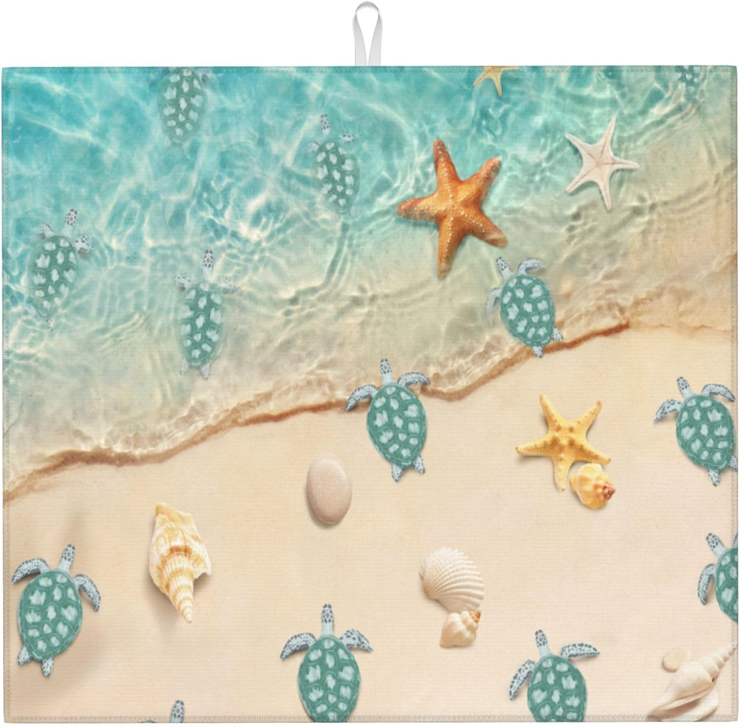 Sea Turtles Beach Dish Drying Mat for Kitchen Counter Washable Absorbent Reversible Microfiber Teal Nautical Decor Drying Pad Kitchen Accessories 16x18 Inch Yellow
