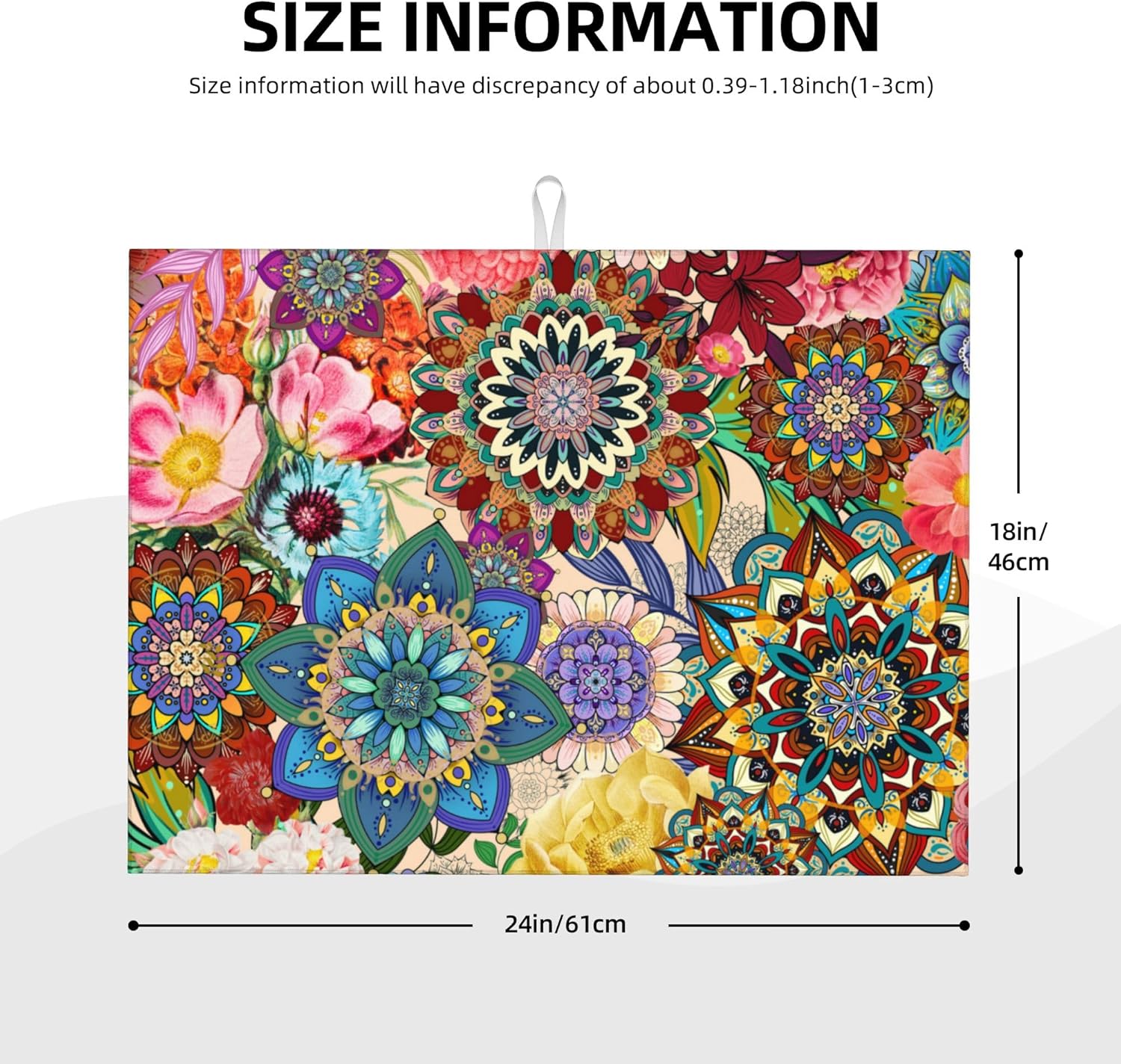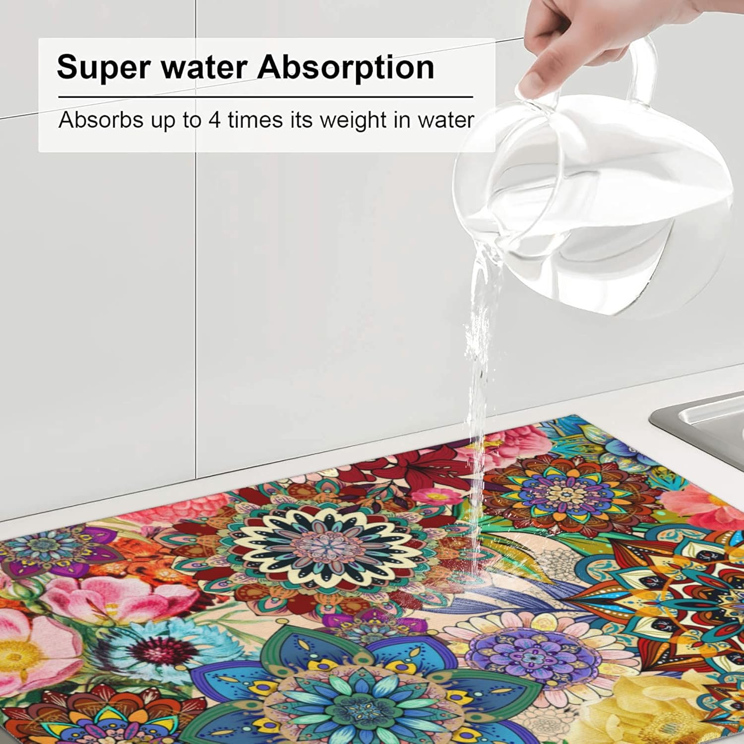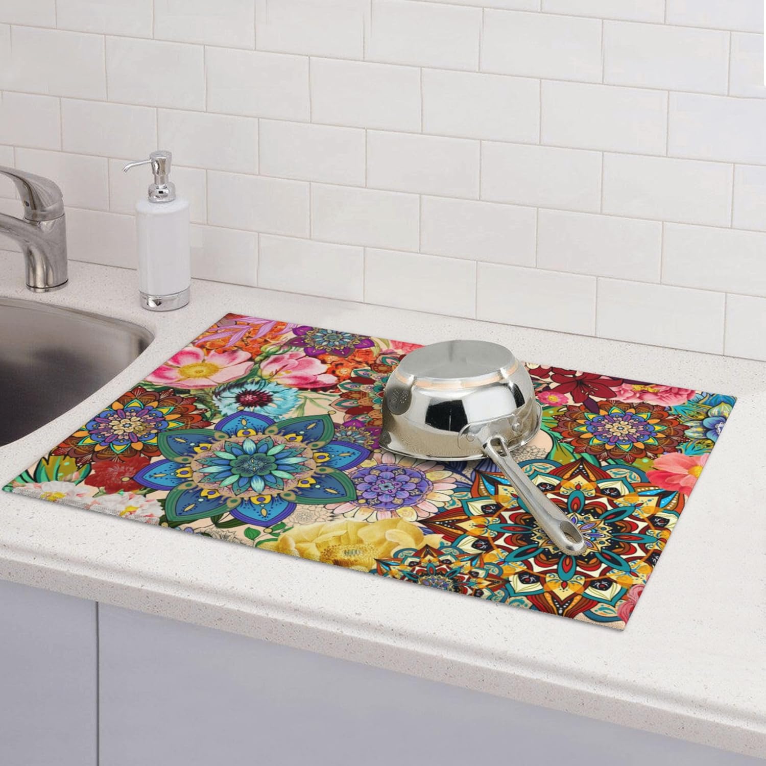 Colorful Flowers Dish Drying Mat for Kitchen Counter Absorbent Reversible Boho Floral Drying Pad Kitchen Decor Dish Drainer Rack Mats 18"x24"