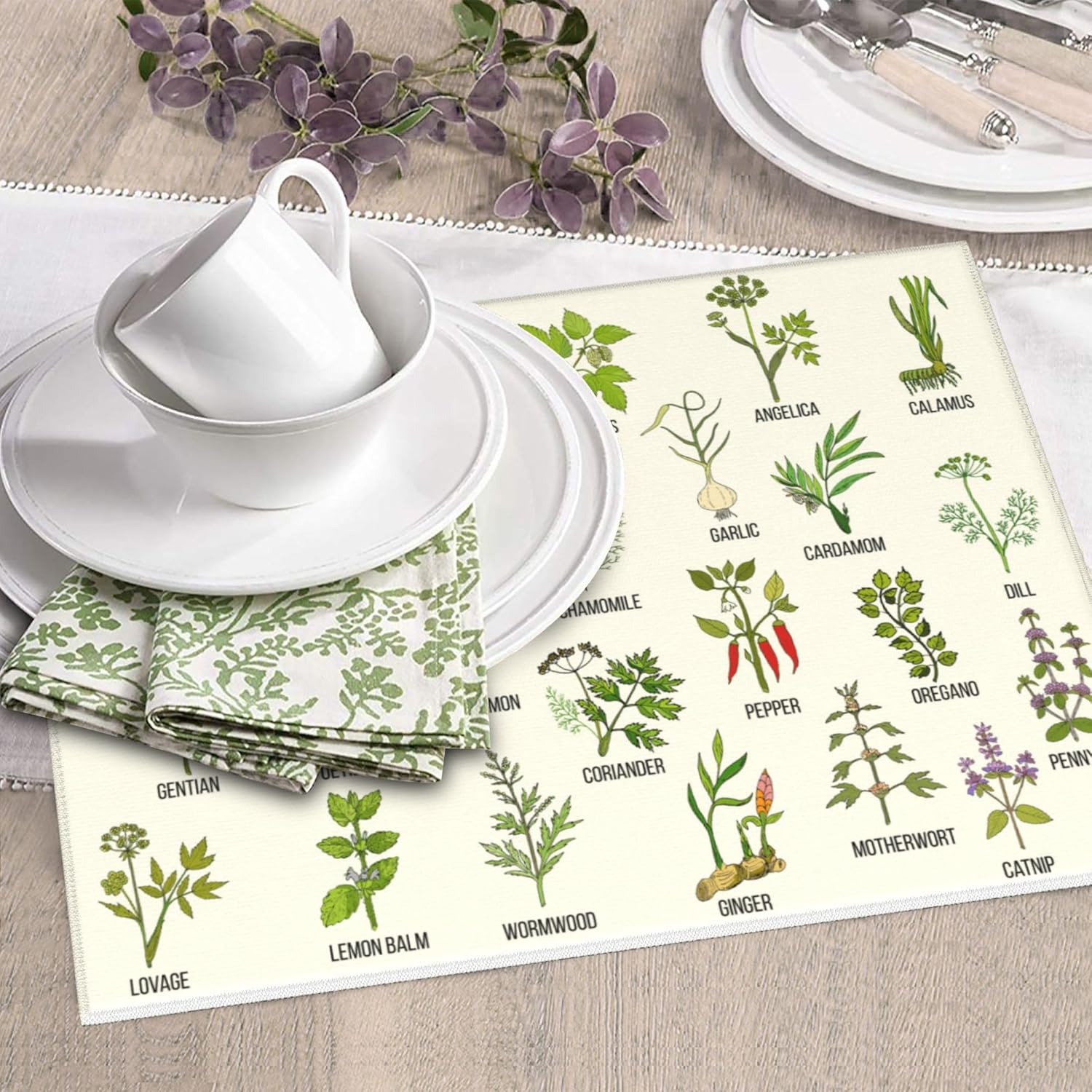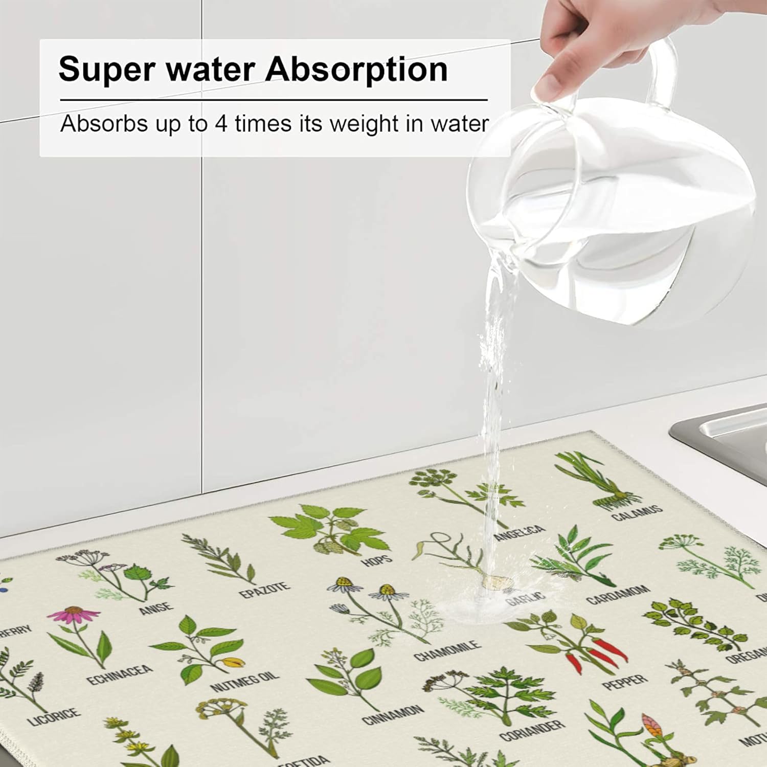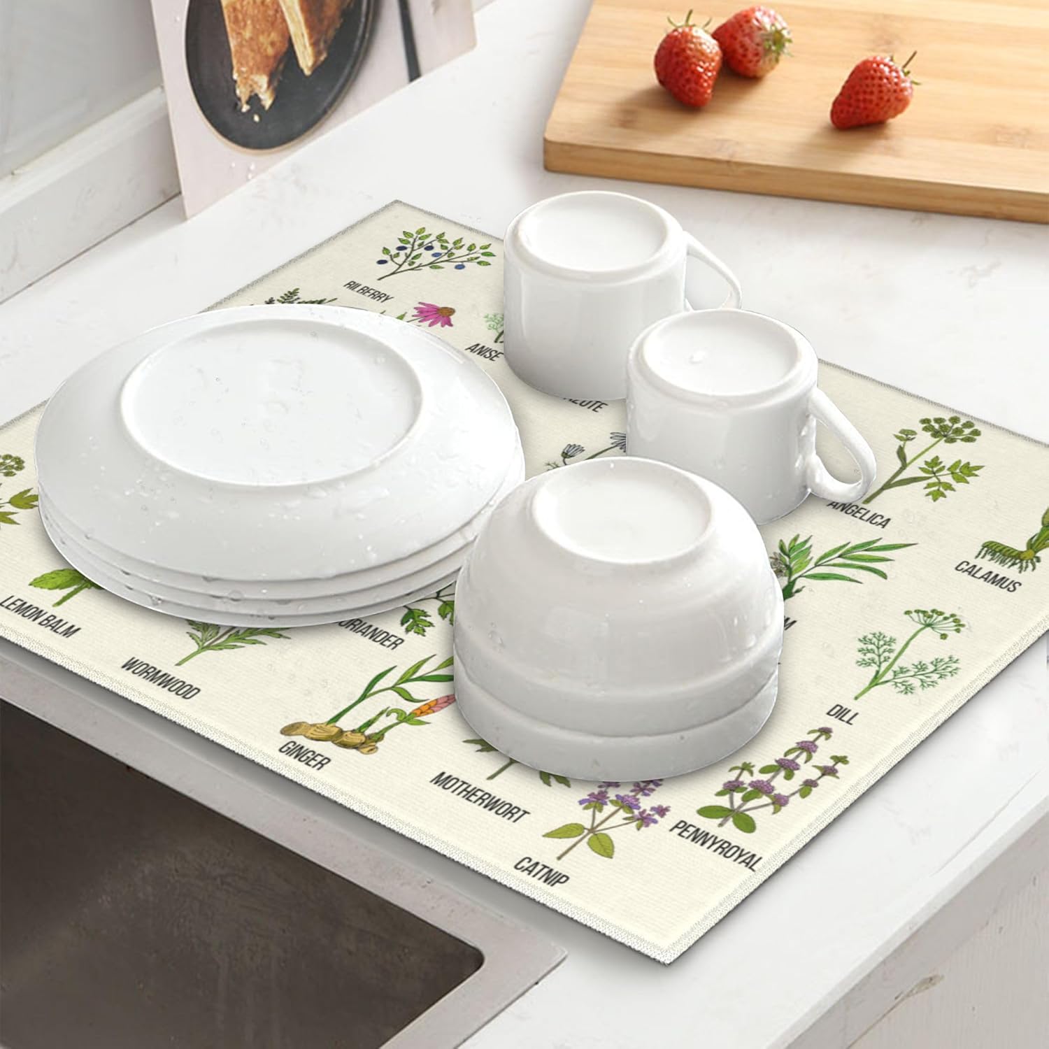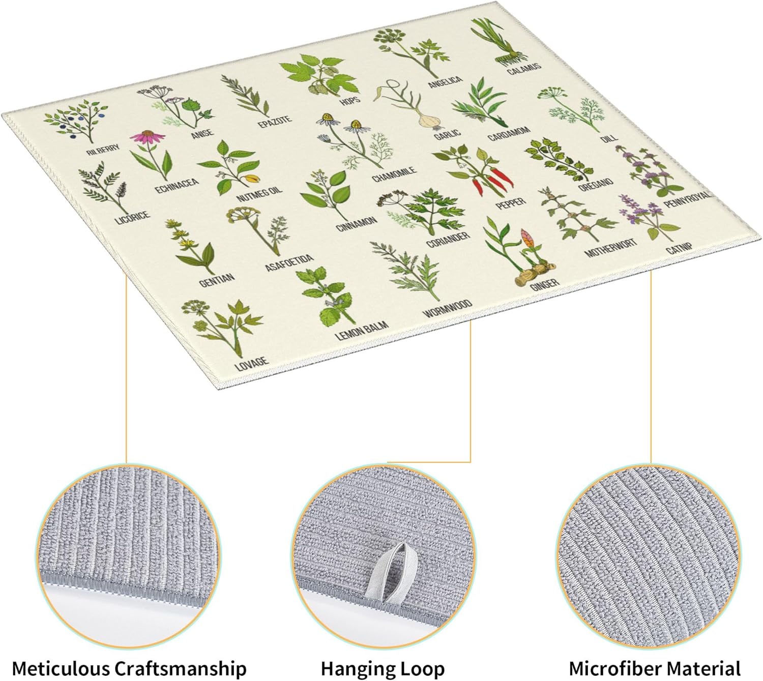Cute Herbs Botanic Garden Plants Dish Drying Mat for Kitchen Counter Washable Absorbent Reversible Microfiber Drying Pad Kitchen Accessories 16"x18"