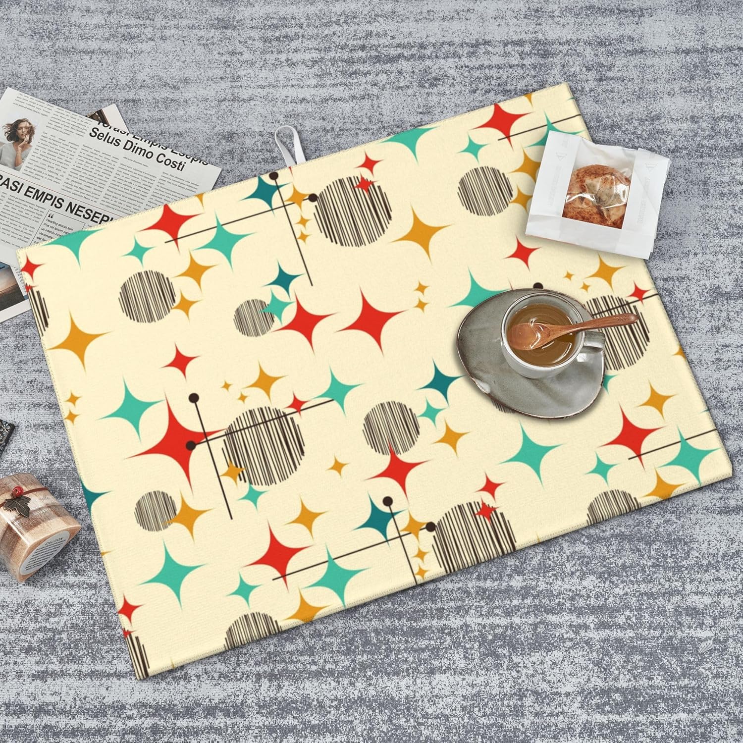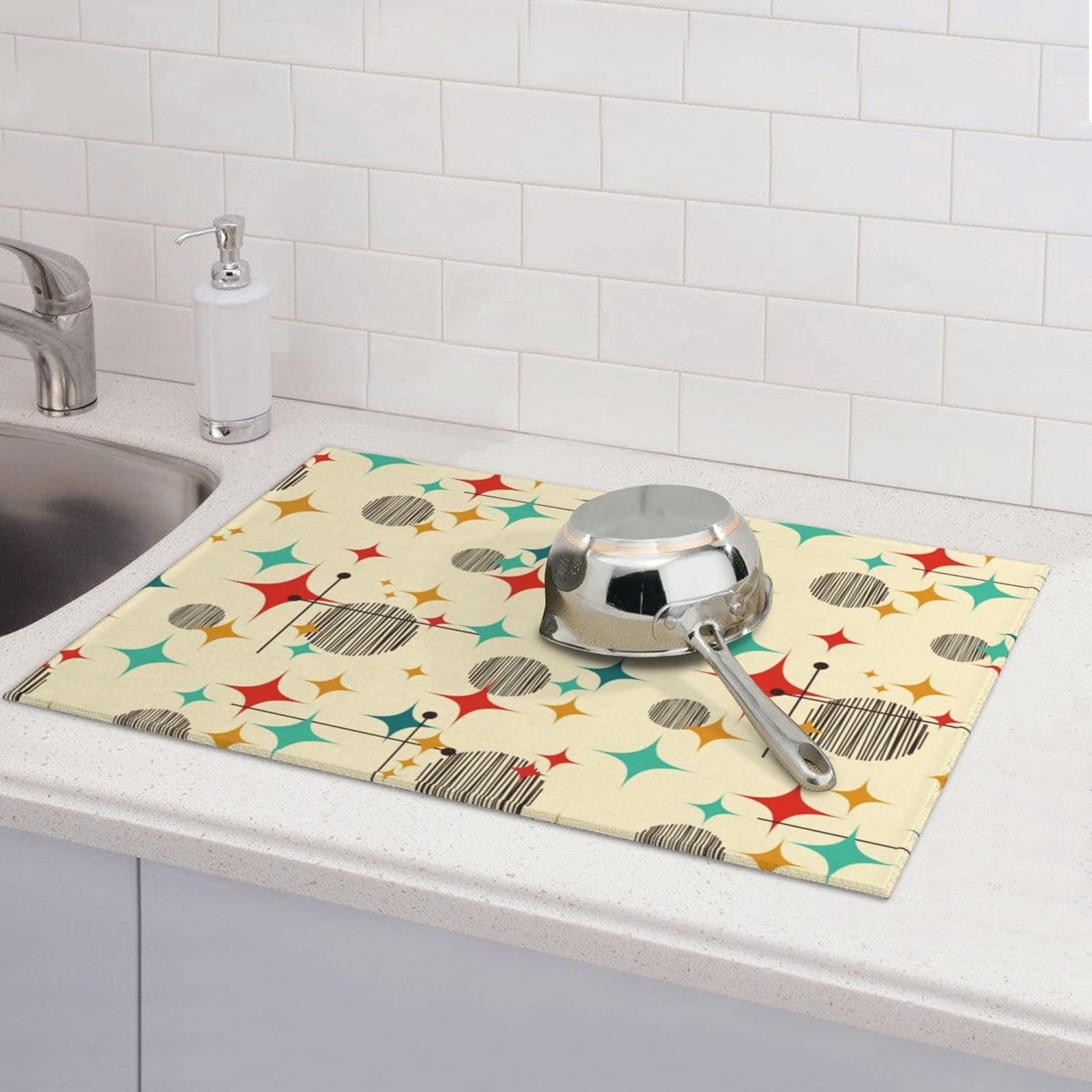 Mid Century Modern Atomic Retro Microfiber Dish Drying Mat for Kitchen Counter 18"x24" Yellow Dishes Pad Dish Drainer Rack Mats Absorbent Washable Reusable Kitchen Home Holiday Decor