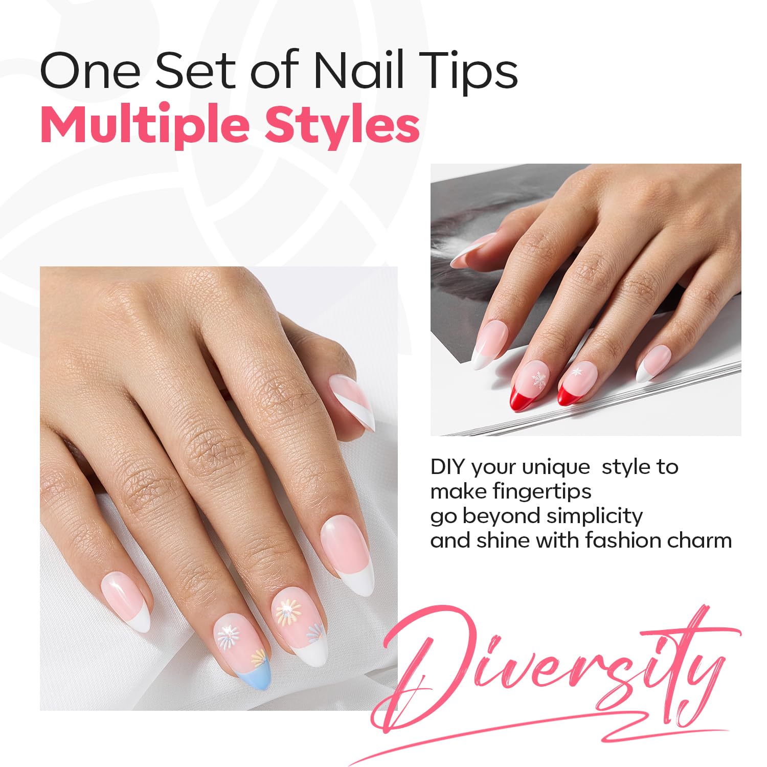 - Timeless French Design: Elevate your style with classic French featuring a natural, crystal-clear appearance. Ultra-thin edges (0.1mm) provide a snug fit, while reinforced tips (0.8mm) deliver lasting strength. The anti-spill back edge ensures a clean, mess-free application for a polished look.
