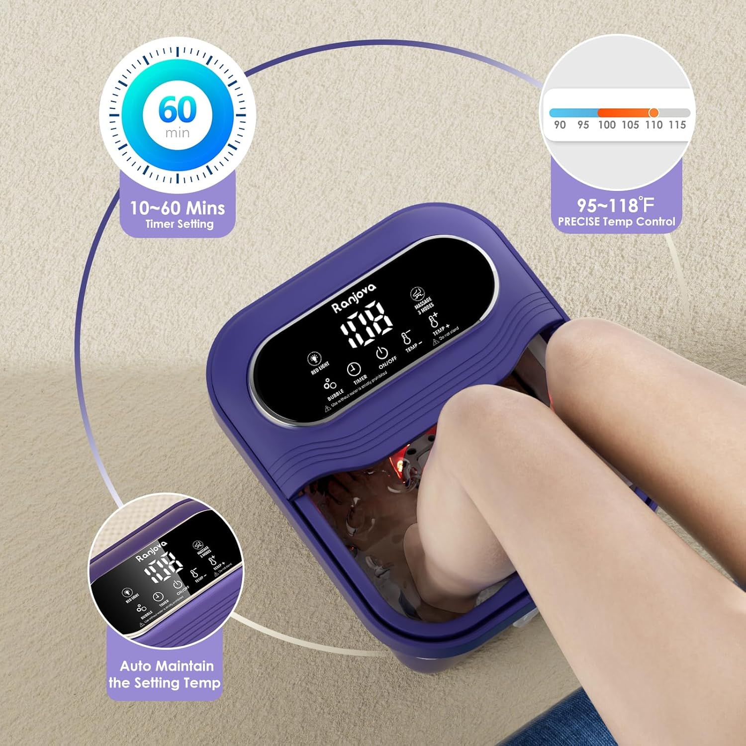 - Precise Temperature Control: The foot spa allows you to adjust water temperature from 95°F to 118°F ,find your most comfortable temp. And this foot bath massager with heat will auto maintain the water temperature and show the setting temp on touch screen