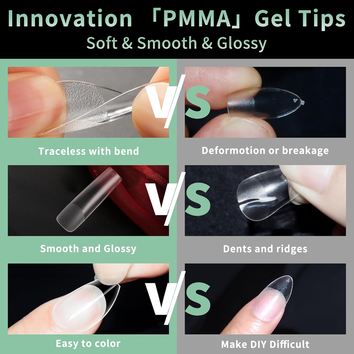 - No Trace Soft Gel Nail Tips: Crafted from gelly soft gel material, these fake nails leave no trace even when bent. Their bright clarity allows for easy pressing, trimming, and painting, helping you create your ideal nail shape effortlessly. Perfect for a true DIY manicure.