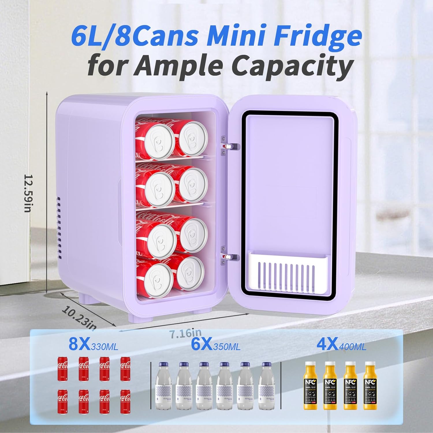 YASHE Mini Fridge, 6 Liter/8 Can 110V AC/DC Portable Thermoelectric Cooler Refrigerators for Bedroom, Skincare, Beverage, Office, Dorm Room and Car, Purple