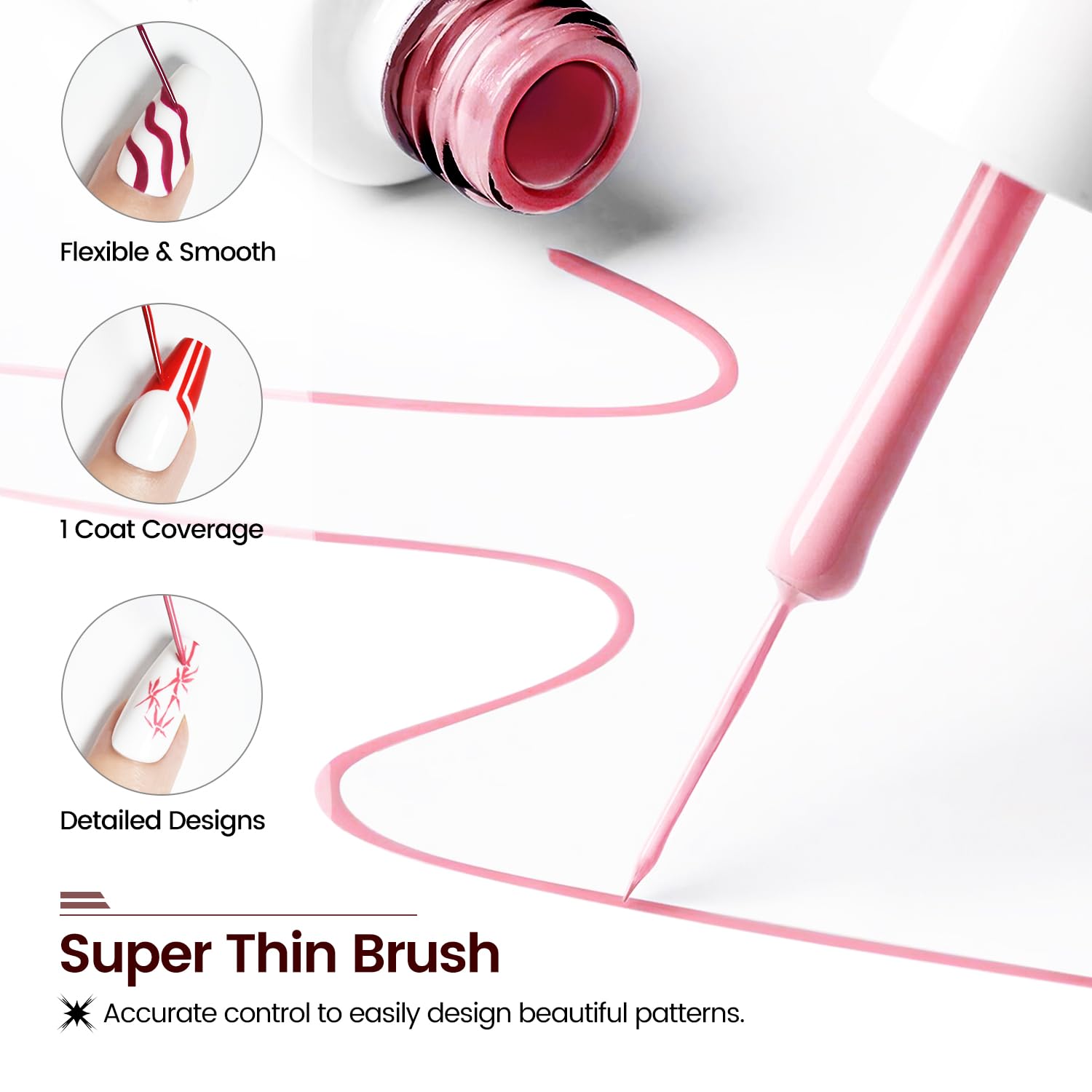 - You‘ll Received:10pcs Nail Art Gel Liner Paint Set.With the built-in thin brush, you don't have to get out your set of brushes for adding details and lines. of nail manicure decoration, especially for nail art manicures. It not only creates a gorgeous momentum for your nails.