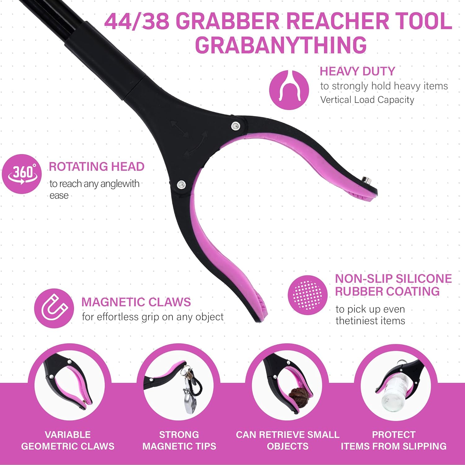 - Heavy Duty Grabber Reacher Tool:The Grabber Reacher Tool (38” & 44”) is perfect for picking up items, reaching high shelves, or even trash pickup. With its durable construction and ergonomic grip, it’s ideal for seniors, those with limited mobility, and anyone who needs extra reach. Heavy-duty grabber tool for everyday use.