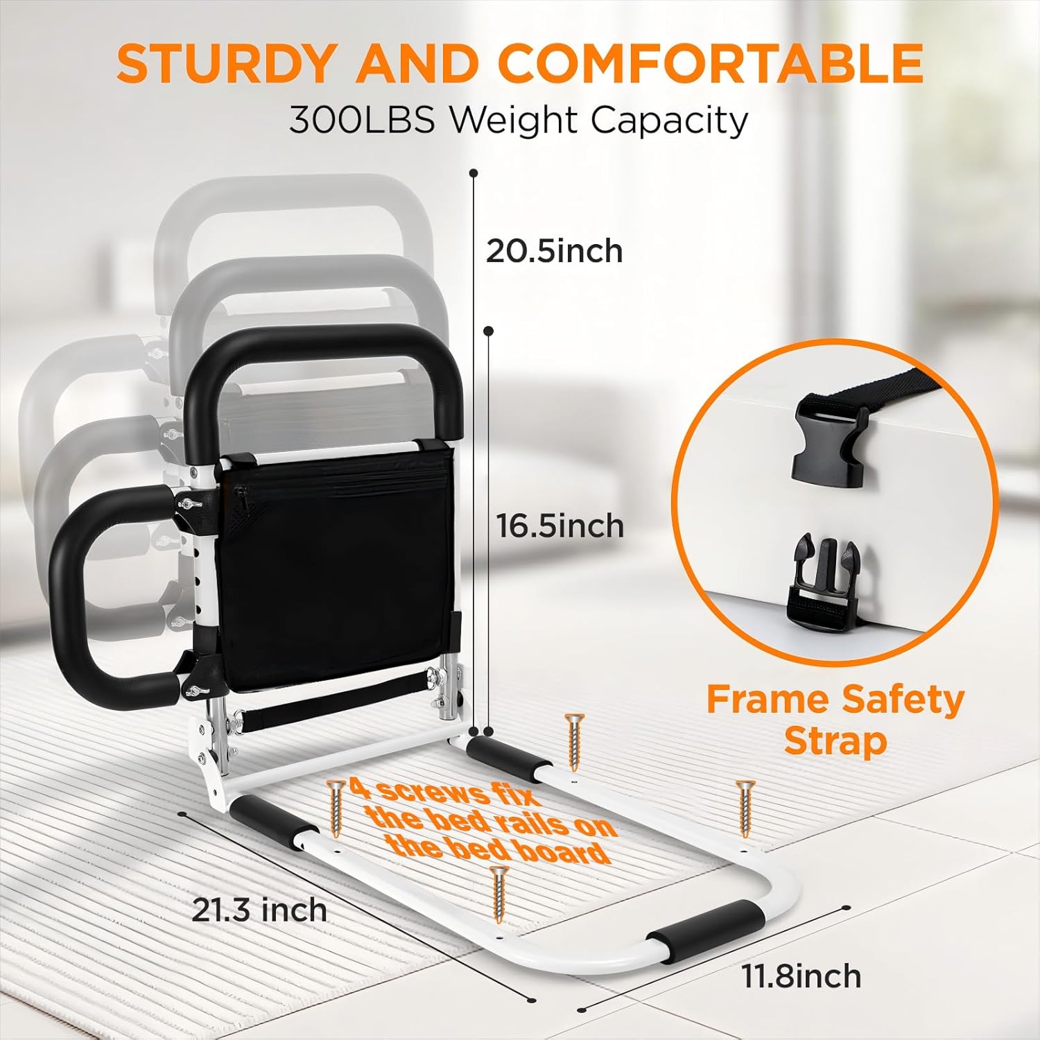 - STABLE AND COMFORTABLE-265LBS WEIGHT CAPACITY: The fixed straps and thickened high-quality stainless steel make the bedrail more stable and sturdy. While also having comfortable non-slip sponge handrails.