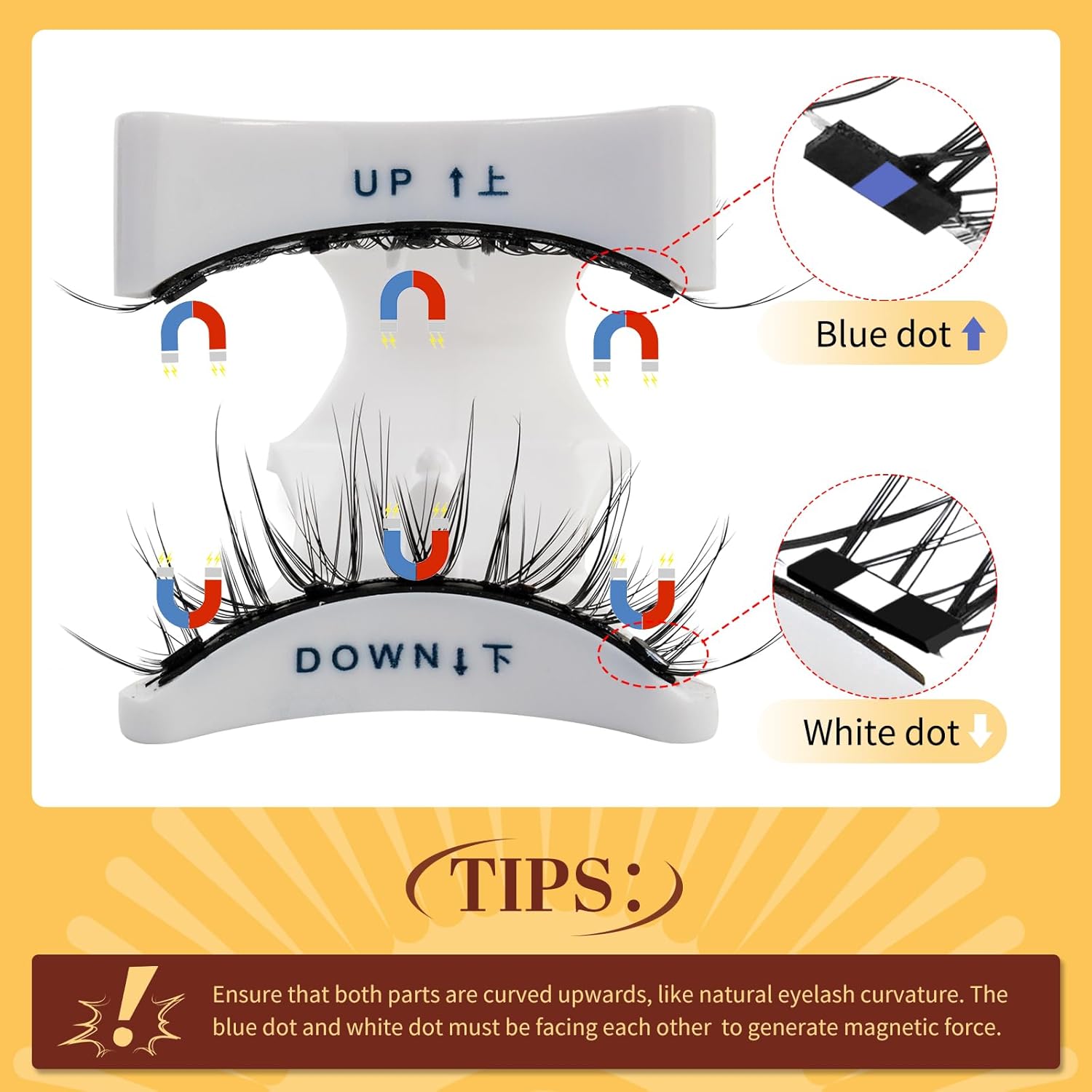 - Magnetic Eyelashes Kit: The magnetic lashes kit includes 1 pair of magnetic eyelashes, 1 magnetic applicator, 1 small magnetic box with a mirror, and one instruction sheet. Magnetic lashes are easy to operate and only take 1 minute to complete, effectively saving your makeup time and allowing you to stay on through an entire sweaty rave!