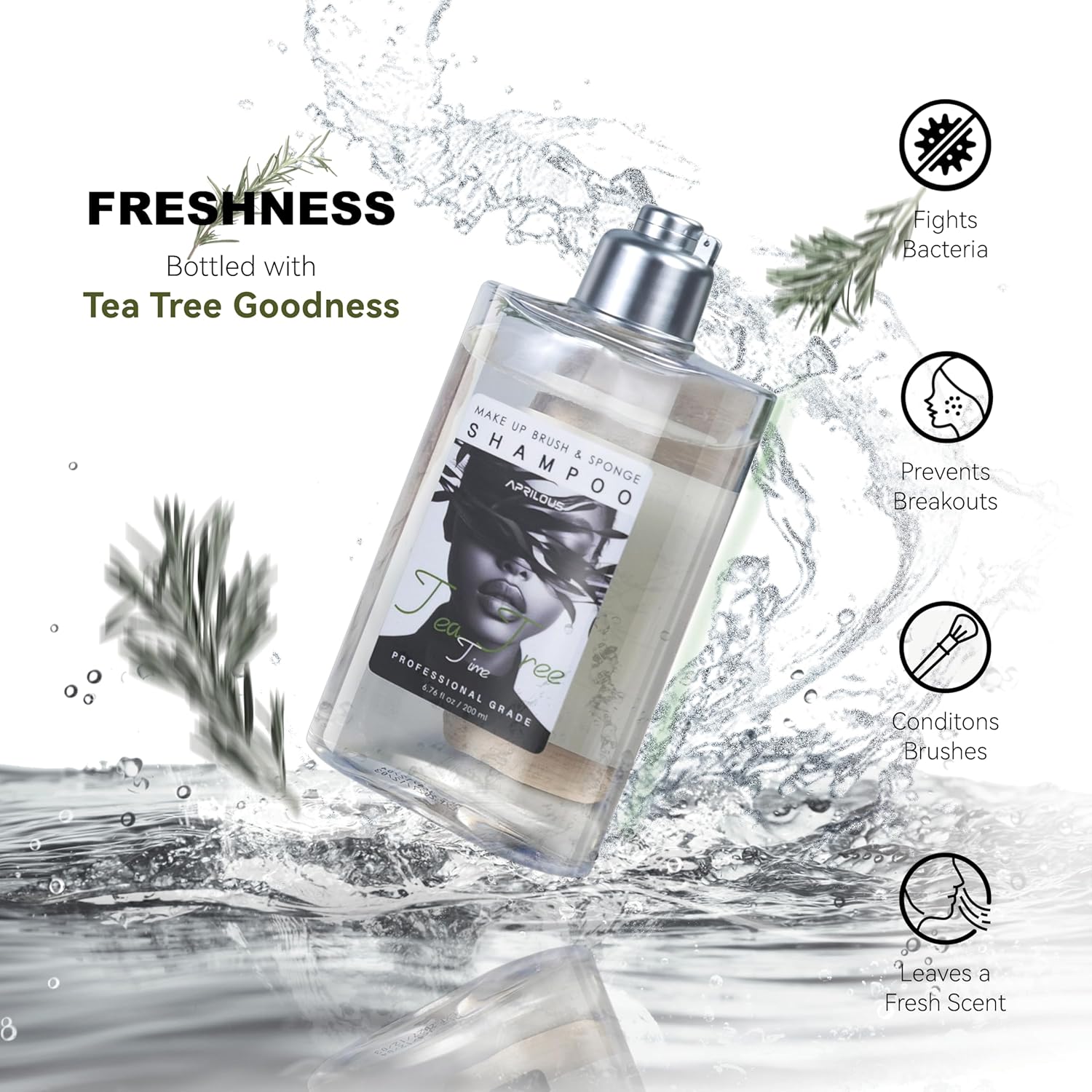 - [Tea Tree Time] Packed with the natural benefits of pure tea tree essential oil, this cleaner does more than just remove makeup. Known for its antibacterial properties, tea tree oil helps fight bacteria and prevent breakouts. It keeps your brushes and sponges fresh, with a subtle, clean scent. Plus, the conditioning formula extends the life of your tools, making it the ideal choice for long-lasting, healthy tools.