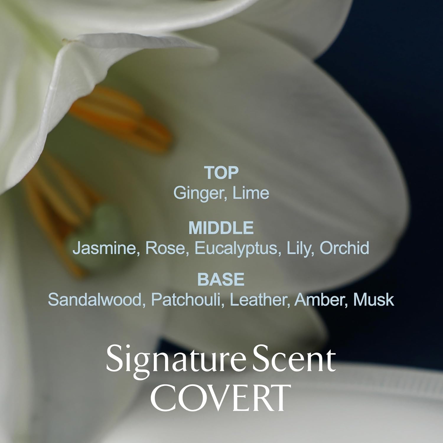 - 1.đł COVERT SCENT_DEEP WOODY AMBER: A deep floral musk with intense woody amber notes. The spicy vibrancy of ginger and lime adds a fresh edge, balanced by lush floral notes, musk, and amber for a sensual and longlasting impression.