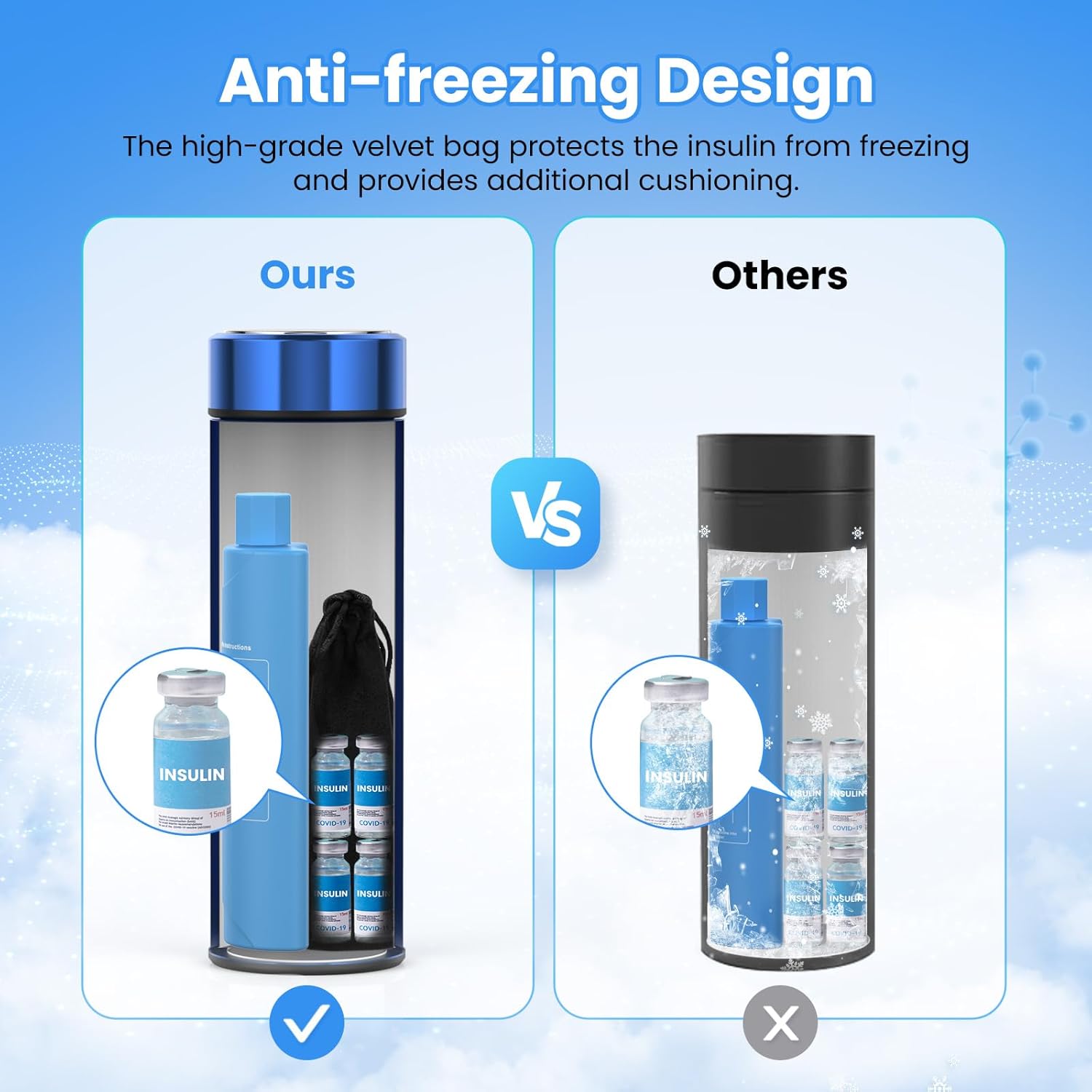 - 60H Cooling Power:Keep insulin safe for up to 60 hours in 86°F (30°C) heat with OnlyCare travel medicine bag's double-layer vacuum insulation and medical-grade gel ice pack. Includes a 12-hour emergency bottle for backup cooling—perfect for travel, hiking, or daily commutes. No more worries about spoiled meds!