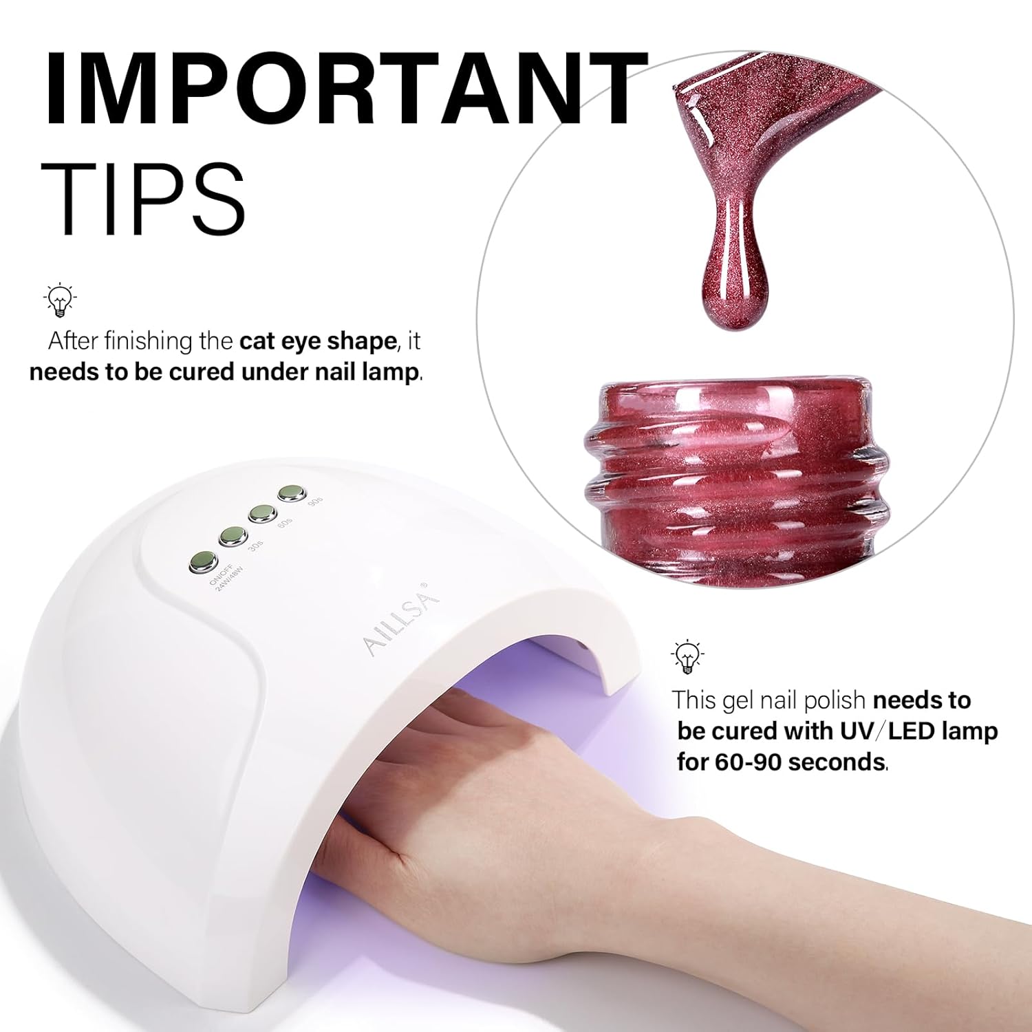 - Crystal Sparkle Effect: AILLSA cat eye gel polish creates mirror-like sparkle, crystal-clear nails, or vibrant cat-eye effects. Use it alone or pair it with any base color for stunning crystal glass nail designs featuring translucent tones and a dazzling finish.