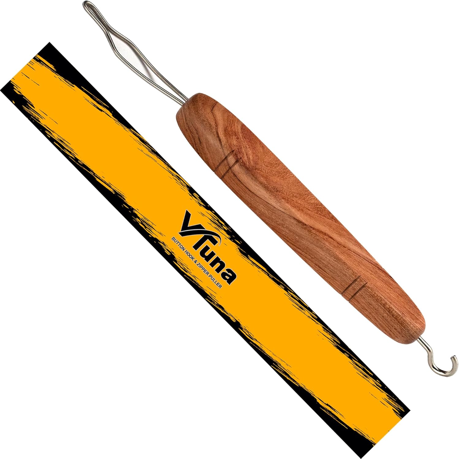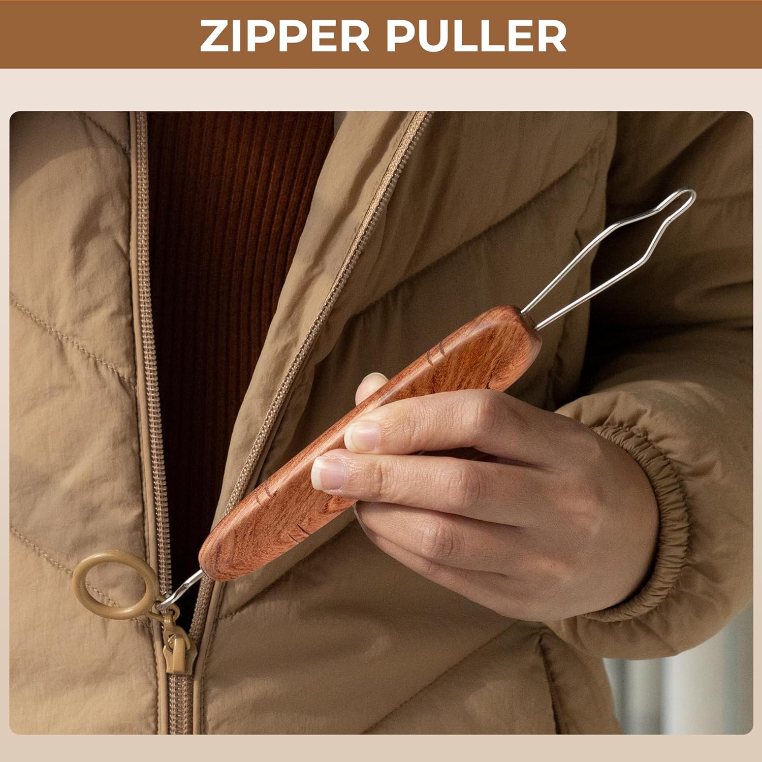 Button Hook & Zipper Pull Helper with Wooden Handle – Comfortable Grip Button Assist Tool for Easy Dressing, Seniors, and Daily Use