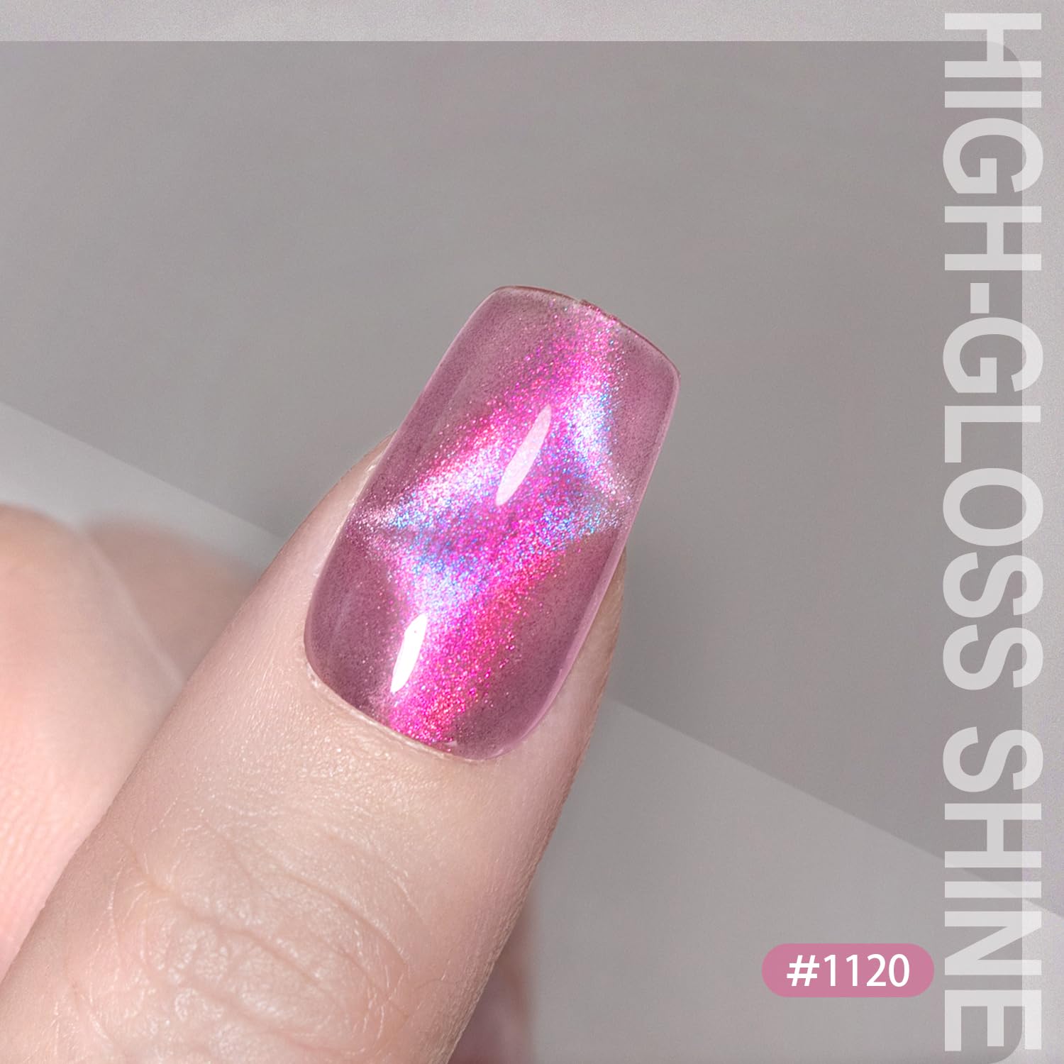 - AURORA GLITTER CAT EYE EFFECT:Package includes 1 bottles of 15ml dark purple pink aurora cat eye glitter gel nail polish.Candy Glass Cateye nails are slightly translucent,a cateye manicure is one of our favorite ways to rock the neutral hue. If you want a sheer shade effect we recommend applying 1-2 layers