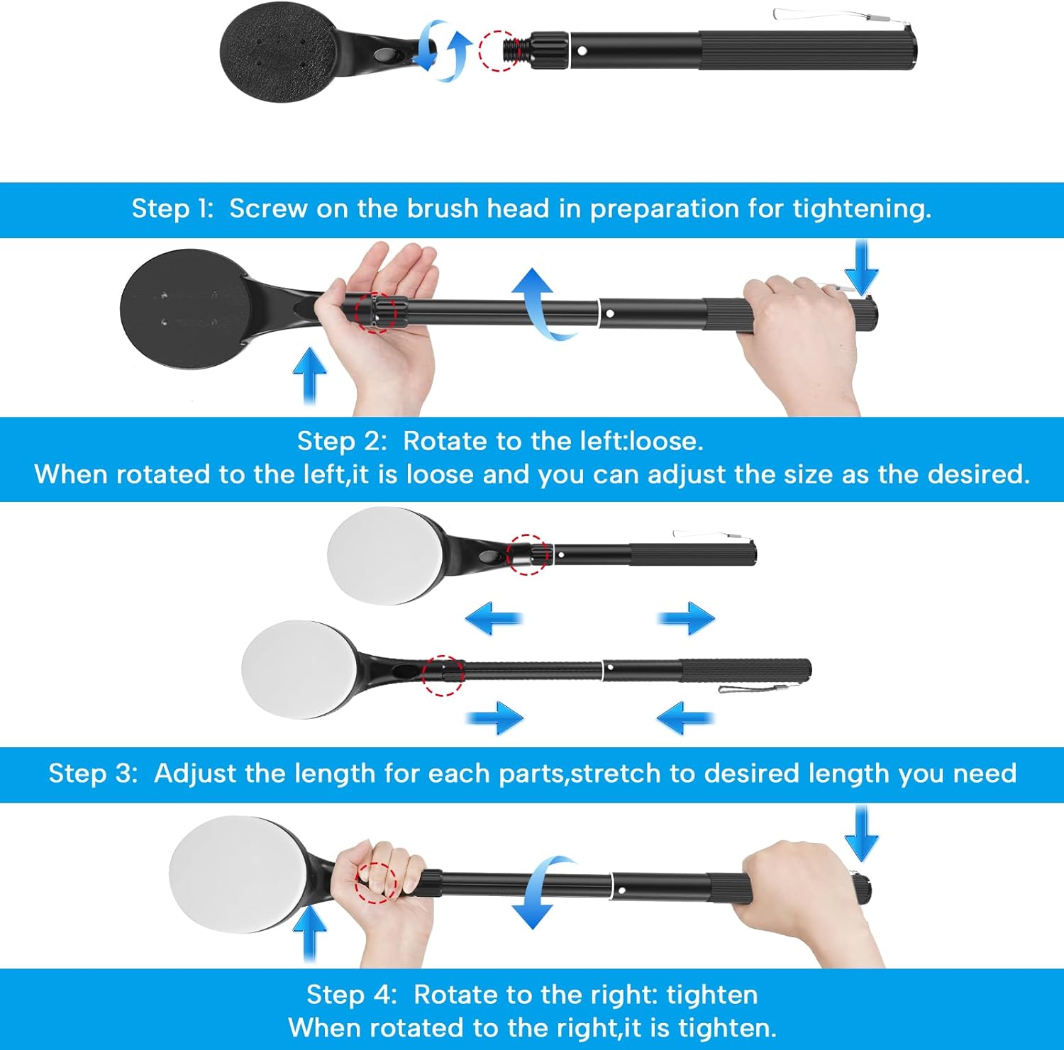 - 【Even Coverage】Lotion applicator for back can be adjusted to any length between 18.7 inches to 25.7 inches, which can help you apply the lotion evenly and smoothly to your back, legs, feet and other hard-to-reach areas