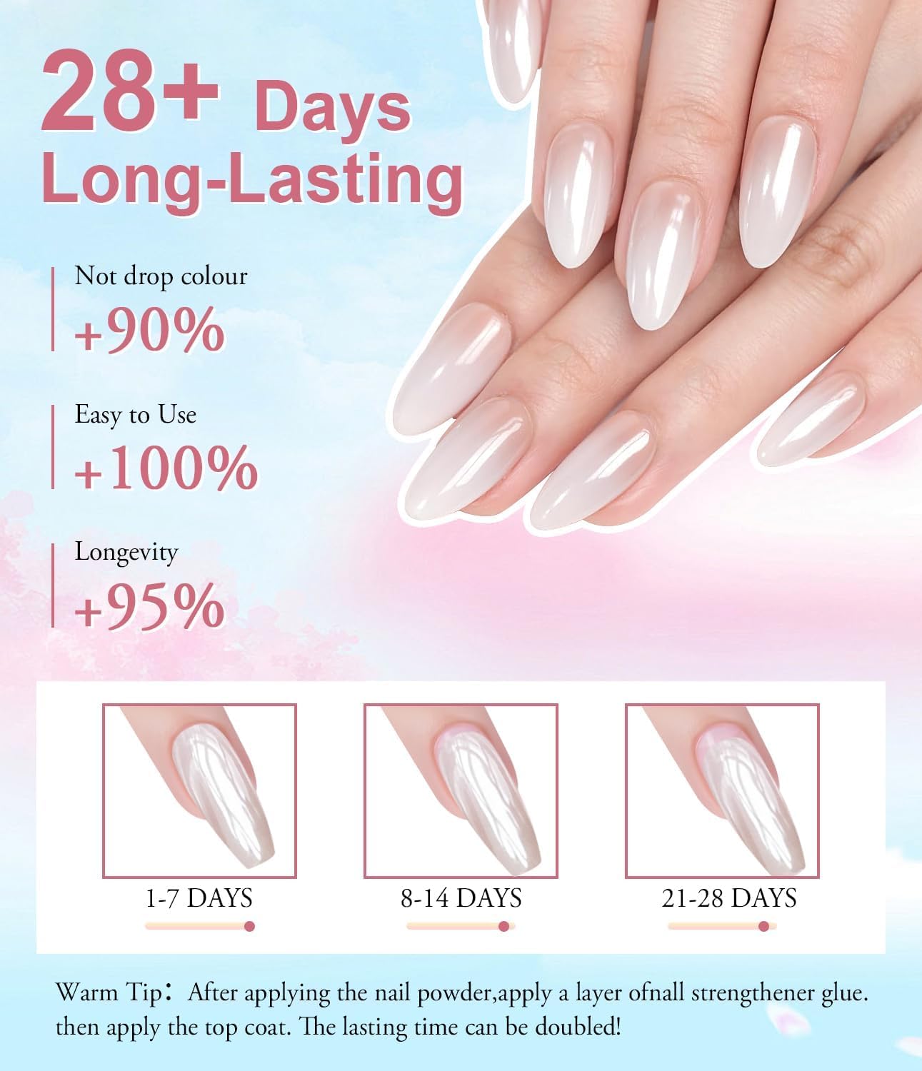 - Ultra Excellent Texture: BISHENGYF white pearl chrome nail powder is super fine in texture, without particles feeling with attractive luster, which can be applied effortlessly in just 2-3mins. And it doesn't get messy when you're using it, resulting in glitter everywhere!