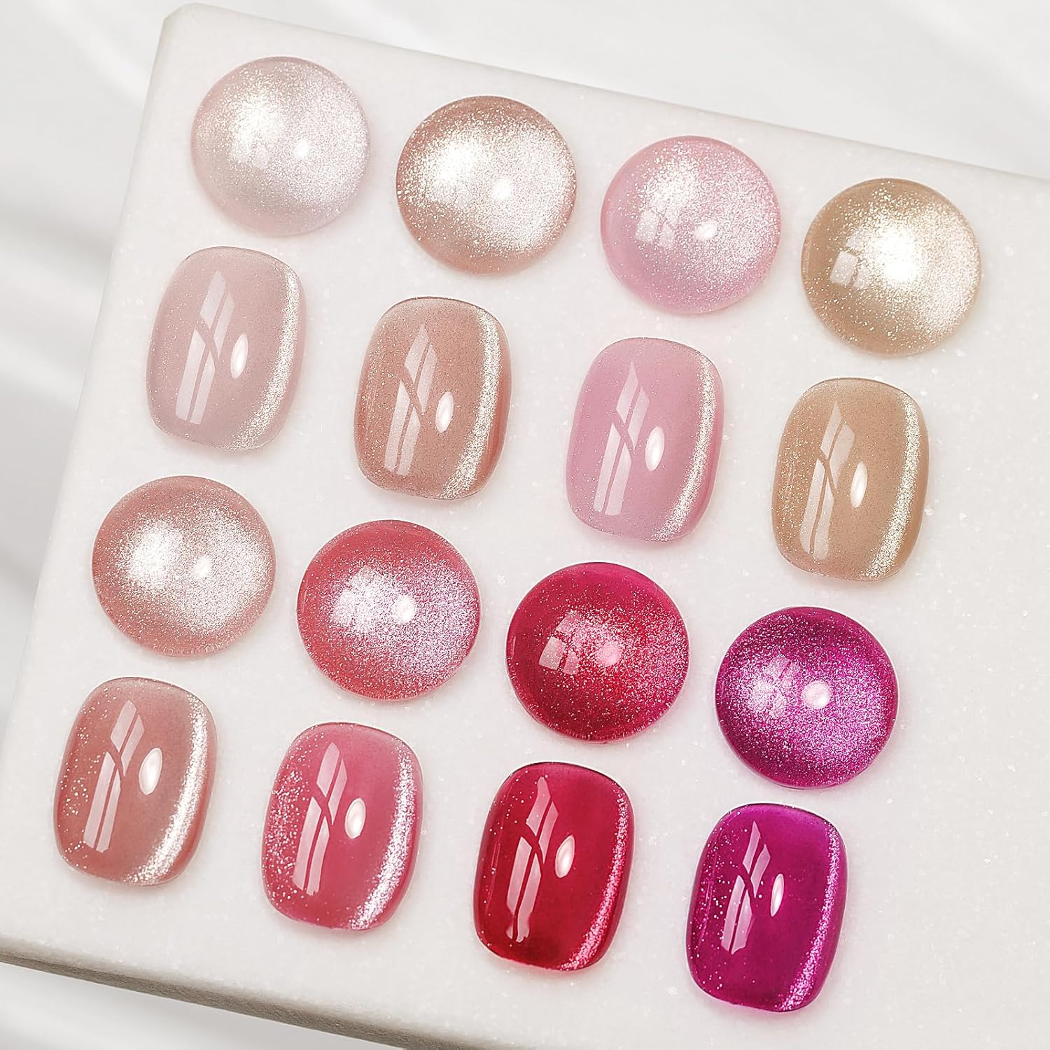 - Included Components : 1 double-headed magnet stick, 8 colors pink series magnetic gel polish