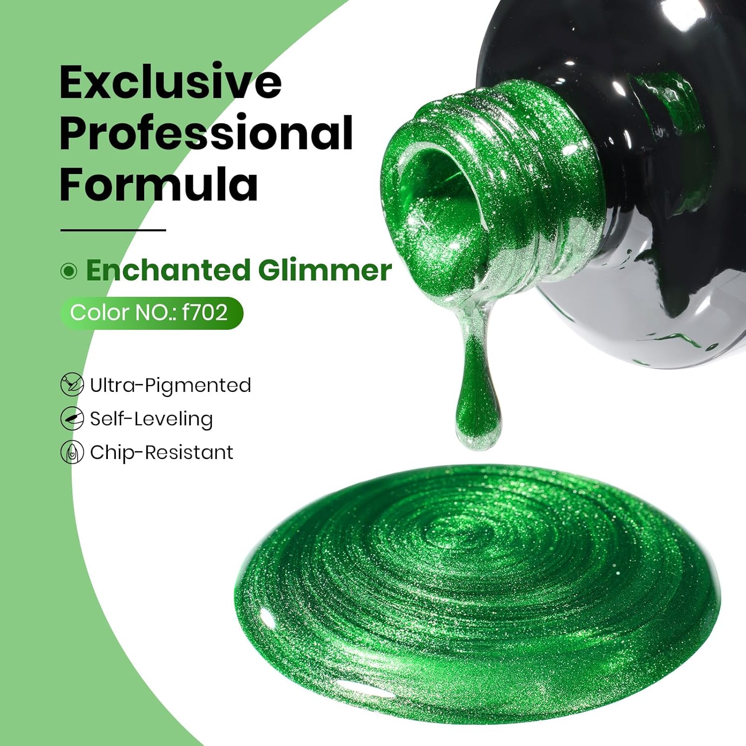 - 【Speed Curing with Uv/Led Lamp】The emerald green gel nail polish needs to be cured under the uv/led light. The average time for uv/led lights is 60-120 secs. It remains sticky after curing and must be used with a base coat and top coat! (Note:This item does not include a base&top coat, which needs to be purchased separately)Tips: Gently shake well before use—especially for metallic, glitter, and cat eye gel nail polish—to evenly mix natural settling of pigment particles.