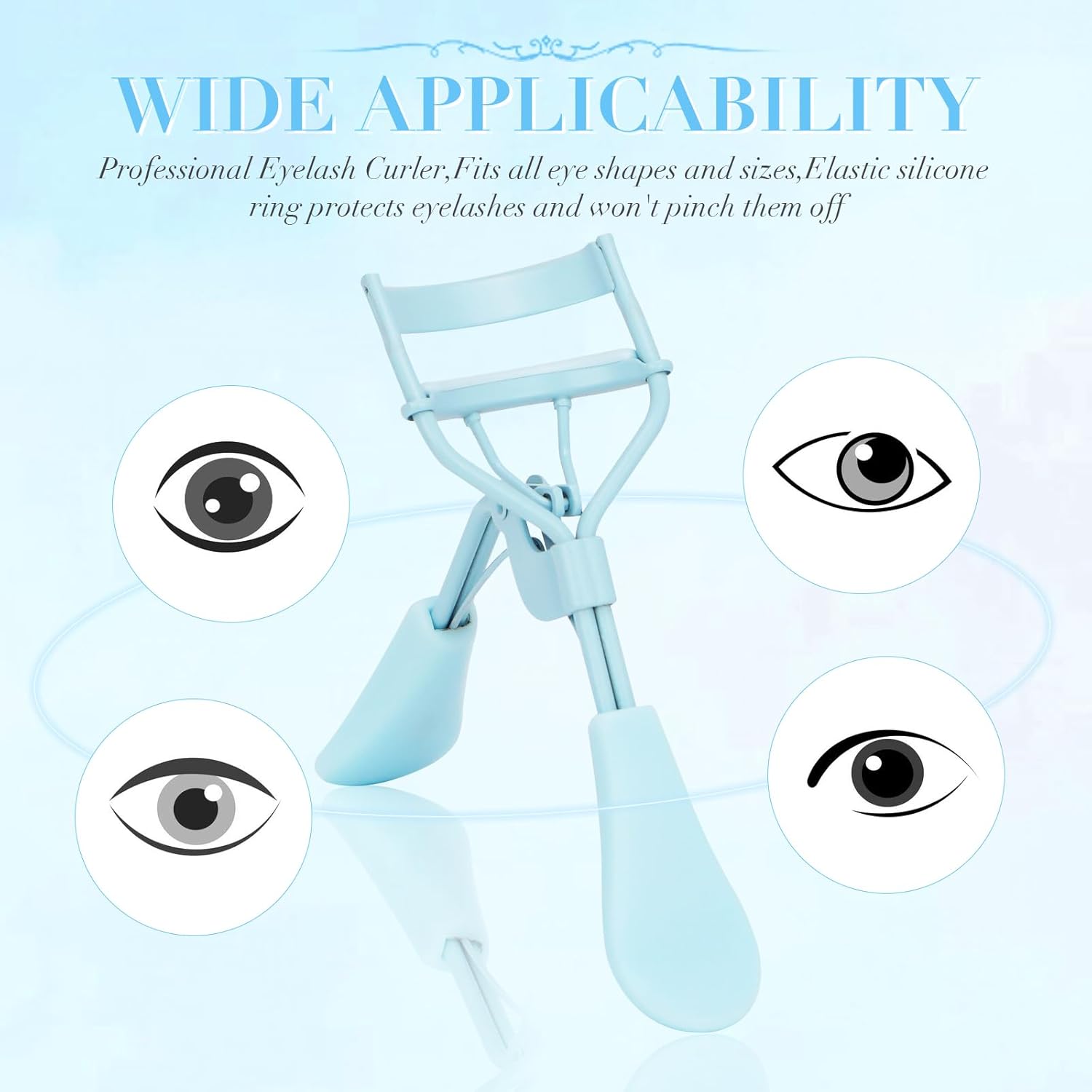 Eyelash Curler with Pads, Lash Curler with 10 Extra Silicone Replacement Pads, Comfortable Grip for Effortless Curling – Eyelashes for The Perfect Eye Contour (Crystal Blue)