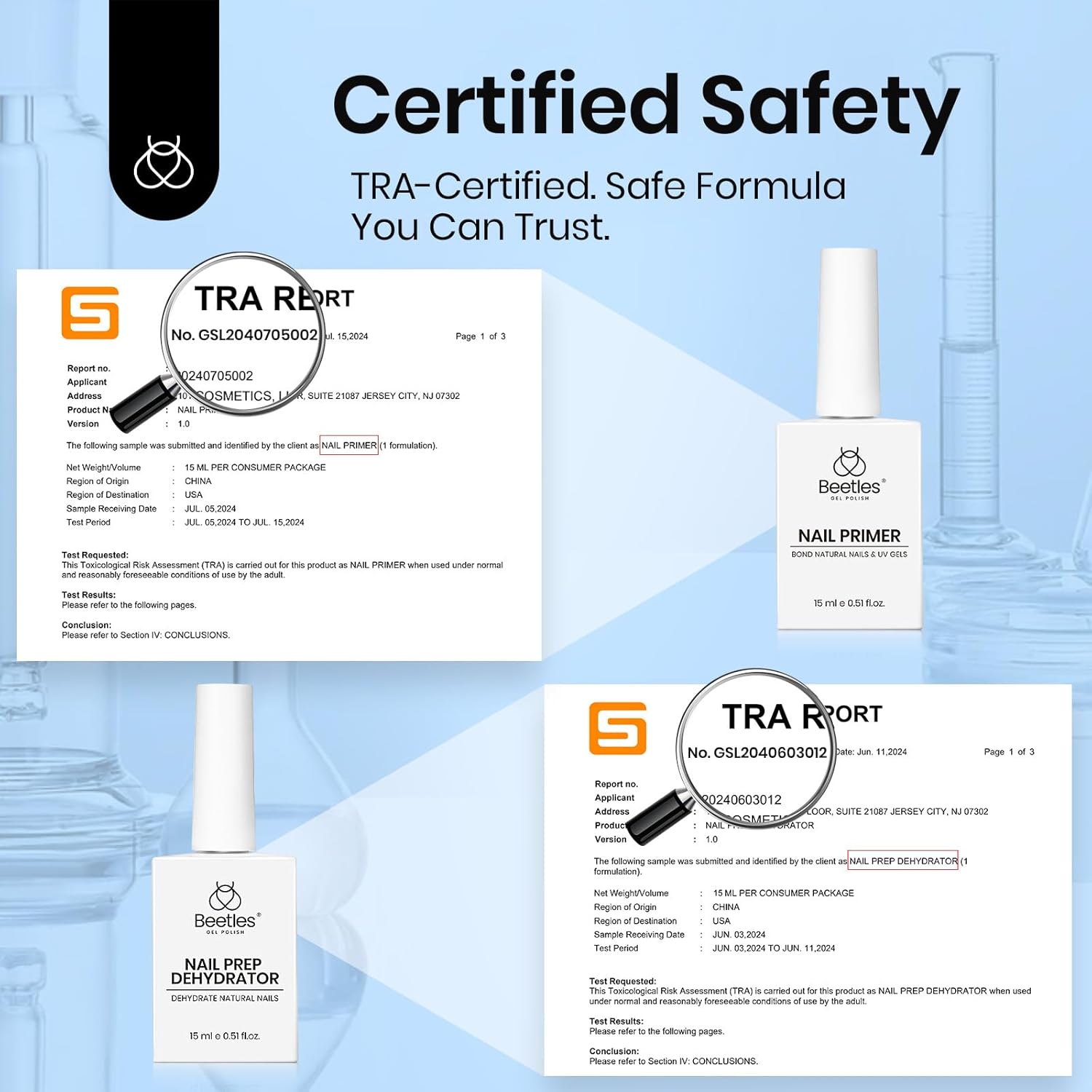 Beetles Nail Dehydrator and Primer - Acid-Free & Hema-Free 2Pcs 15ml Nail Bonding Agent for Gel Polish and Acrylic Nails, Long-Lasting No-Lift Prep for Salon & DIY Manicures