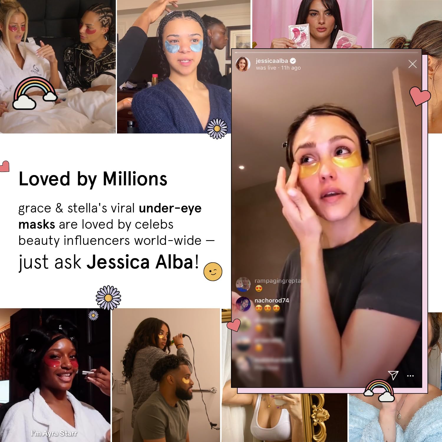 - Loved By Millions - Not to brag, but our under eye patches for puffy eyes are kind of famous. Theyâre featured in magazines like Elle & Marie Claire, and used by celebrities like Jessica Alba. Experience the hype with this all-color variety set!