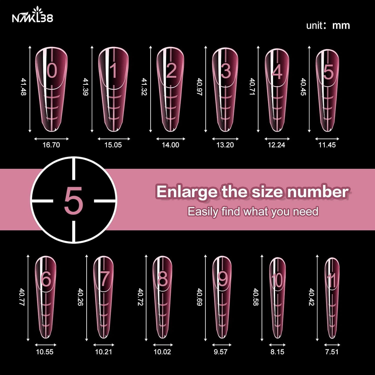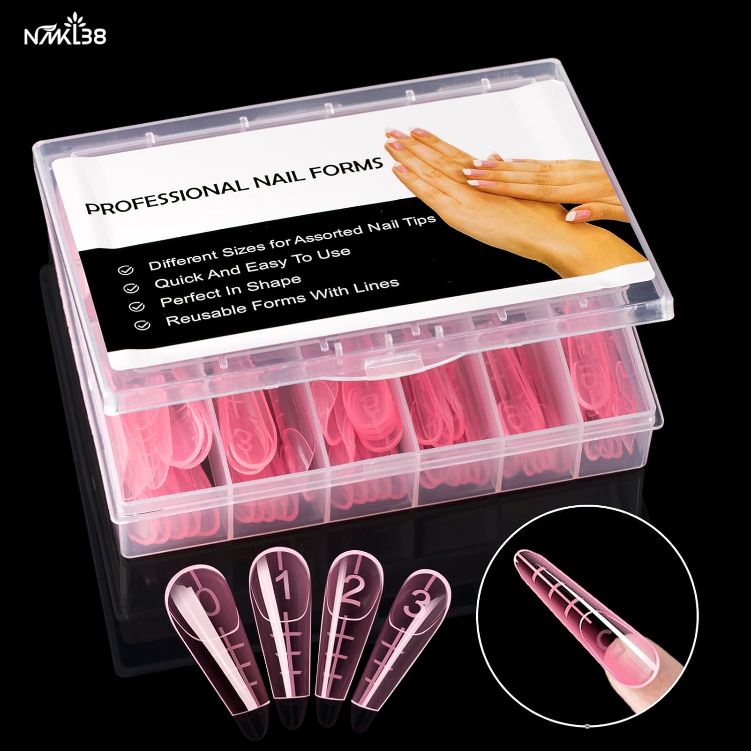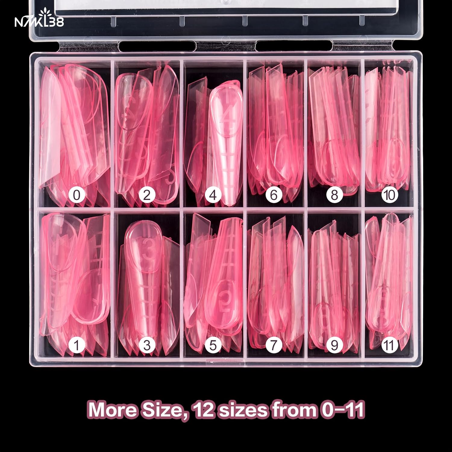 NMKL38 Diy 120PCS Clear Dual Nail Forms Full Cover Nail Mold Tips Arched Almond Acrylic Nail Extension Tools for Poly Gel Nail Art Salon