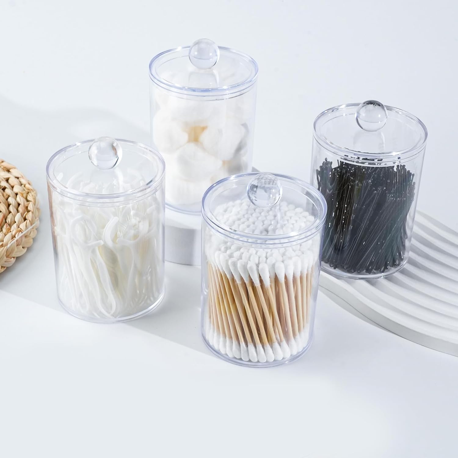 - PRODUCT INCLUDES:Product includes 3 x 10 oz,3 x 12 oz cotton swab jars with lids, smooth edges, safe and unbreakable