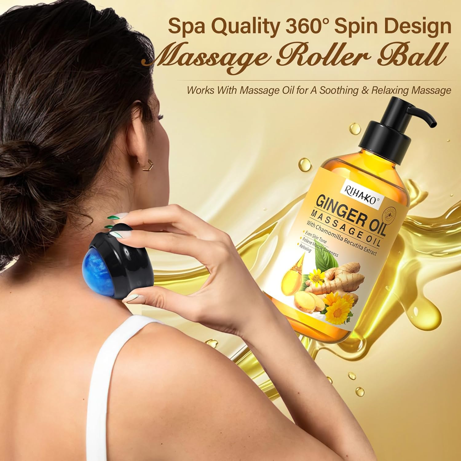 - ✨ At-Home Spa Experience – Skip the salon! The included 360° massage ball tool glides smoothly to relieve knots and tension while enhancing absorption of oils for a professional massage feel right at home.