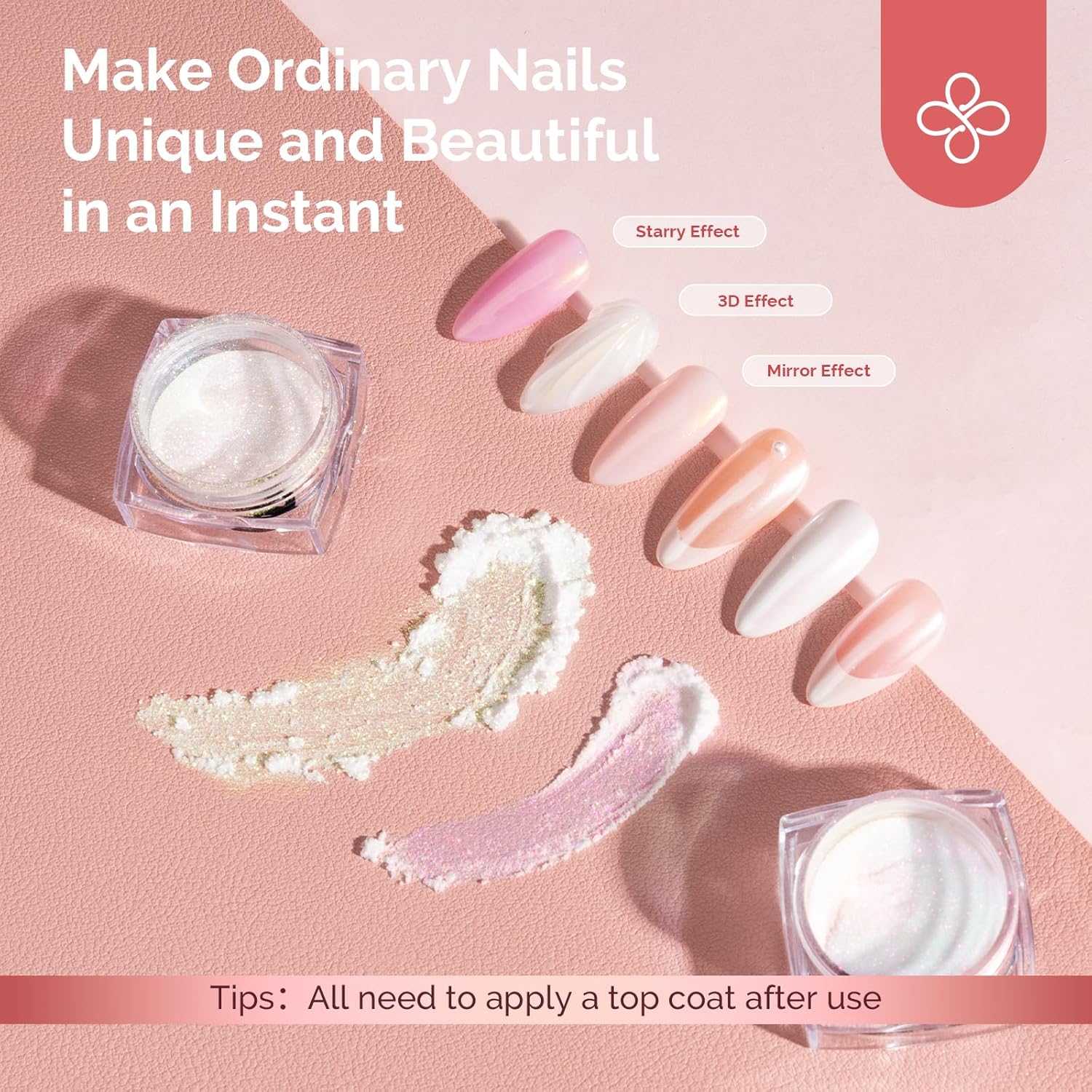 - Wide Range of Applications: Suitable for UV gel nails, acrylic nails,natural nails or false nails.Easy to get a salon grade chrome effect without special techniques.Powder is easy to apply and suitable for beginners