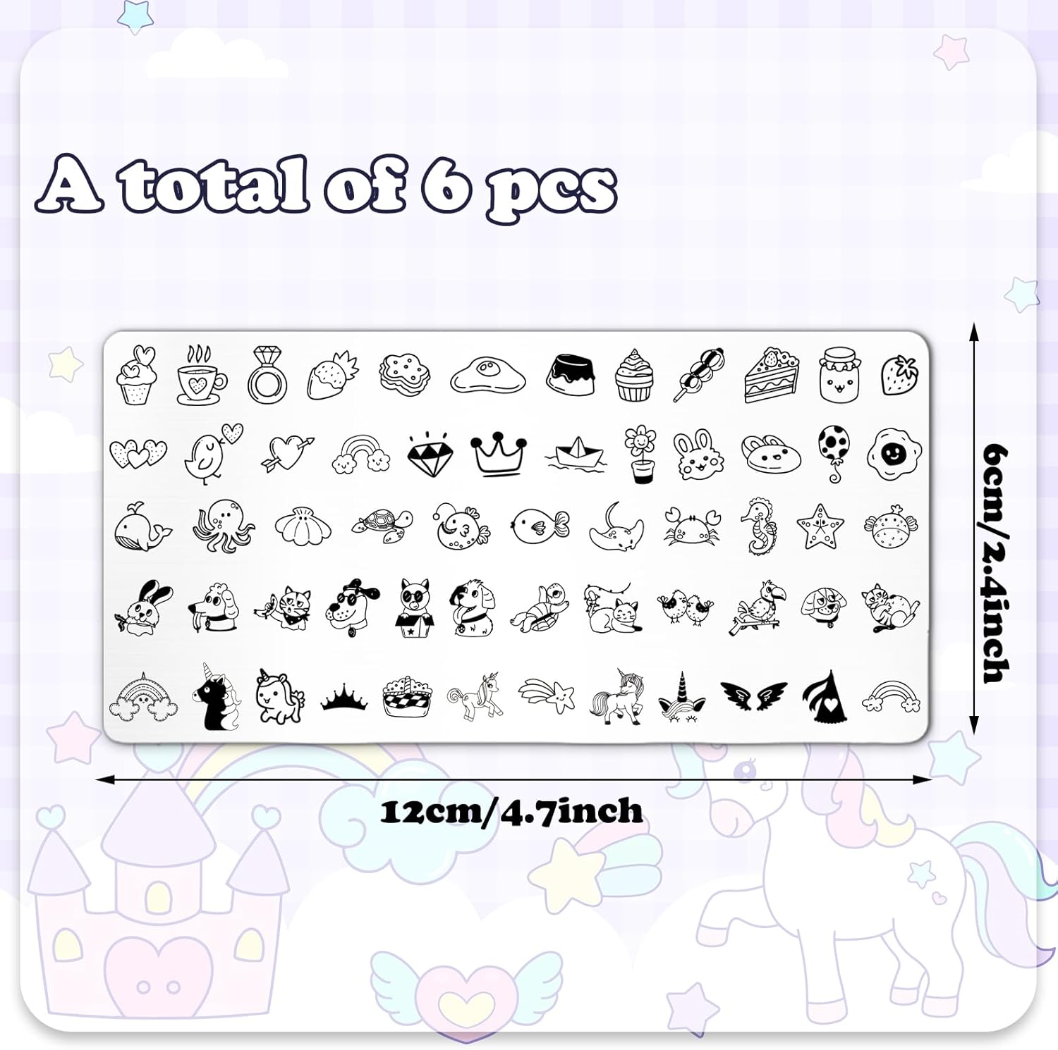 Whaline 6Pcs Kids Nail Plates Stamping Set Cute Animal Floral Dessert Stamp Templates Nail Art Plates for DIY Print Manicure Salon Design