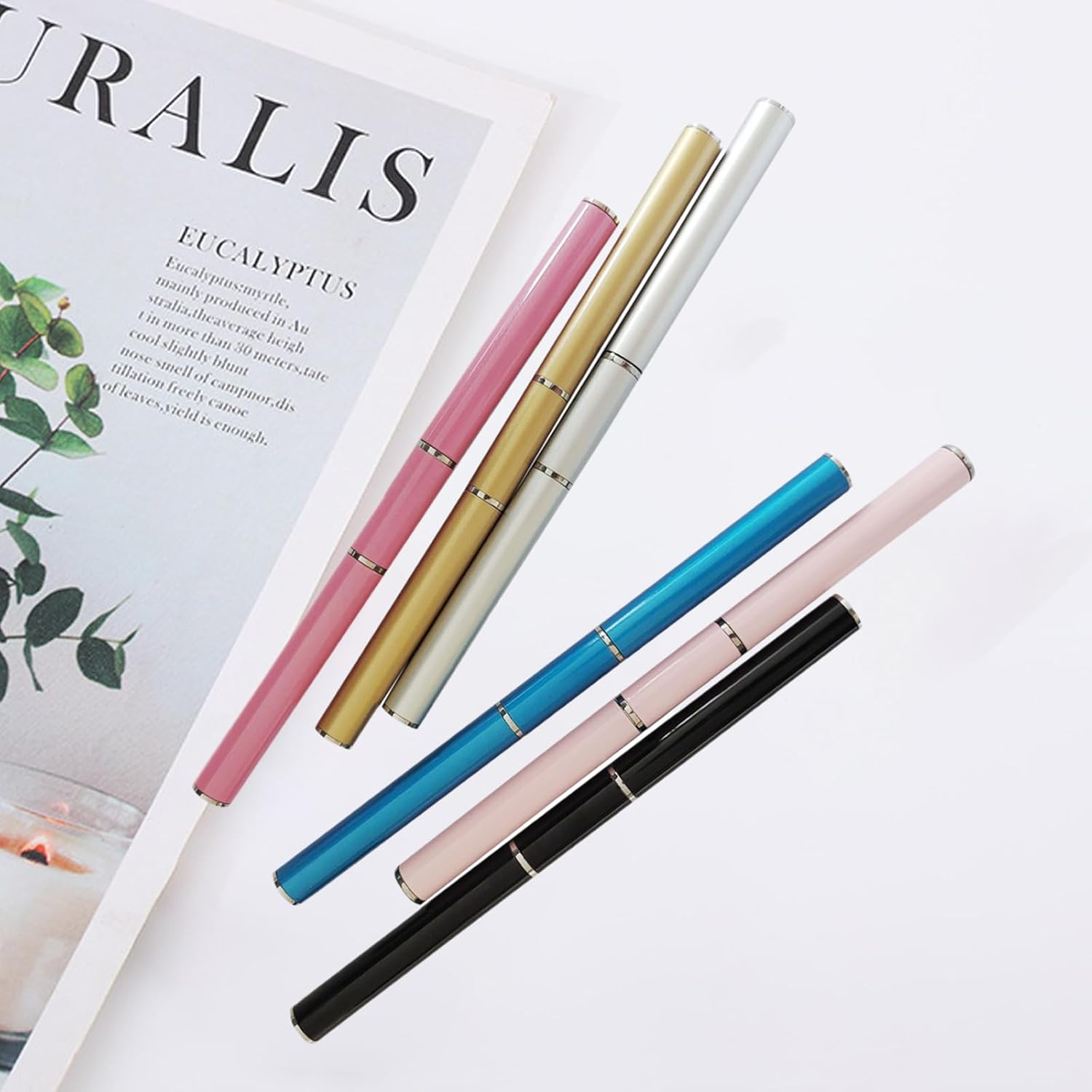 - 【Size & Package】Whmeolyo nail art brush kit includes 5 different color nail art tools, which are black, blue, pink, gold, silver, rose. Whmeolyo nail art brush set size 17cm/6.7in. Each gel nail brush comes with two caps and a clear plastic storage tube to keep the brush clean. Meet all your different requirements.