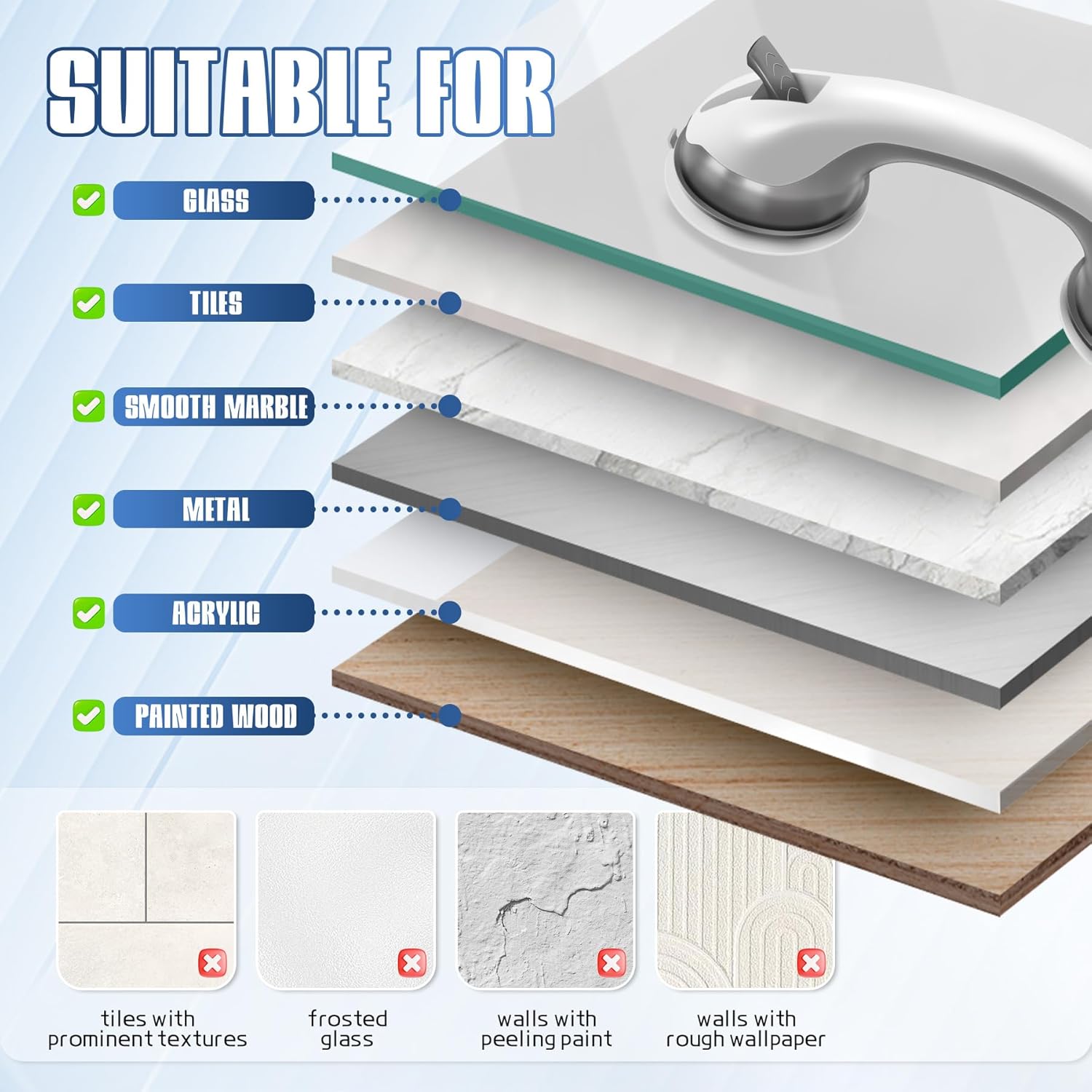 - Stays Secure, Even When Wet - Waterproof and moisture-resistant, these shower grab bars hold firm after exposure to water. The 3.9" shower handles for elderly suction cups tightly grip smooth surfaces. If suction weakens, soak the suction cup grab bar in warm water for 5 minutes, air dry, and reinstall for repeated use.