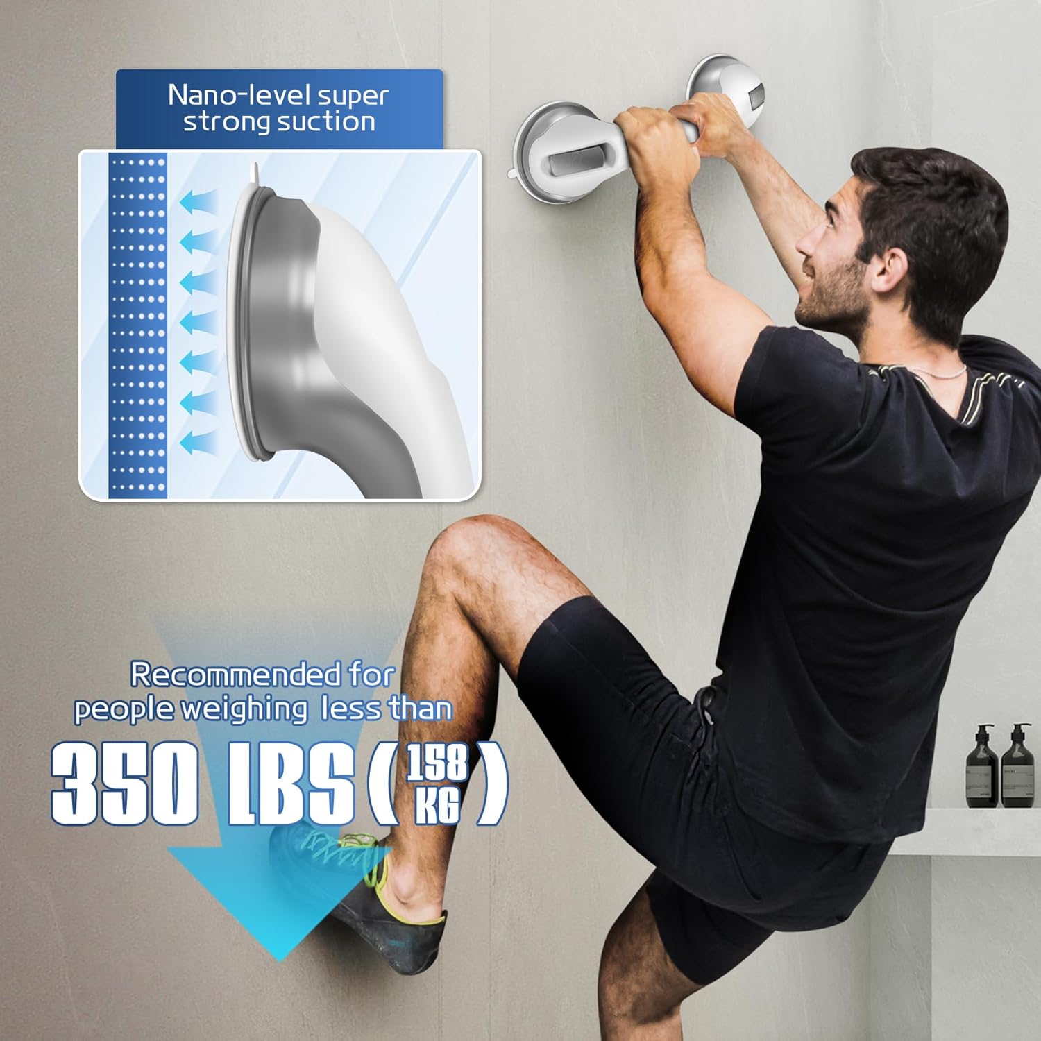 - Comfort Grip, Long-Lasting Build - Shower grab bars suction crafted from durable plastic with flexible rubber suction cups, the ergonomic shower handle offer a secure, non-slip grip. Measuring 12" Ă 3.9", the grab bars for shower are perfectly sized for daily stability and comfort.