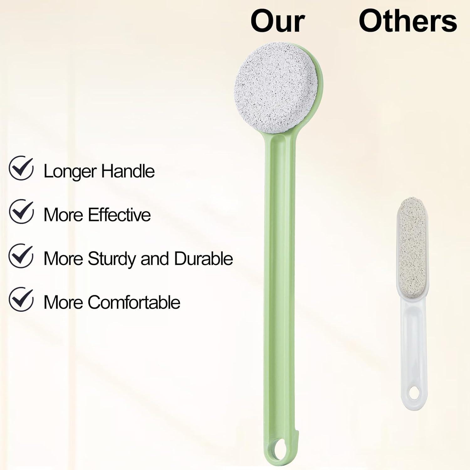 - Long Handle Design: The 14-inch long handle pumice stone allows for comfortable use and easy reach to the bottom of feet. It has a hanging hole for easy storage. Our foot pumices is a perfect gift for seniors, pregnancy and people with back or legs pain etc