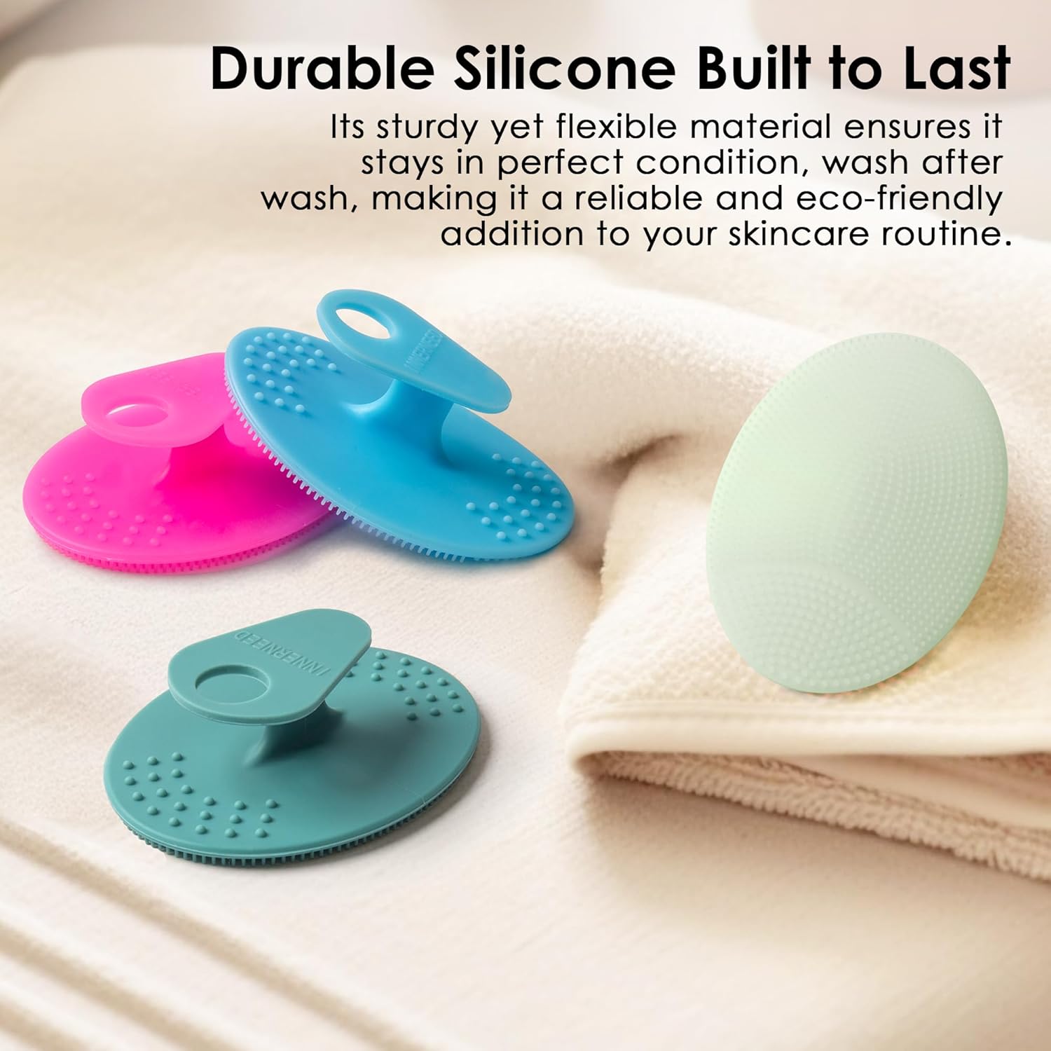 4 Pack INNERNEED Silicone Face Scrubber for Deep Cleansing and Exfoliation – Soft Facial Cleansing Brush, Gentle for All Skin Types, Blackhead Remover, Portable