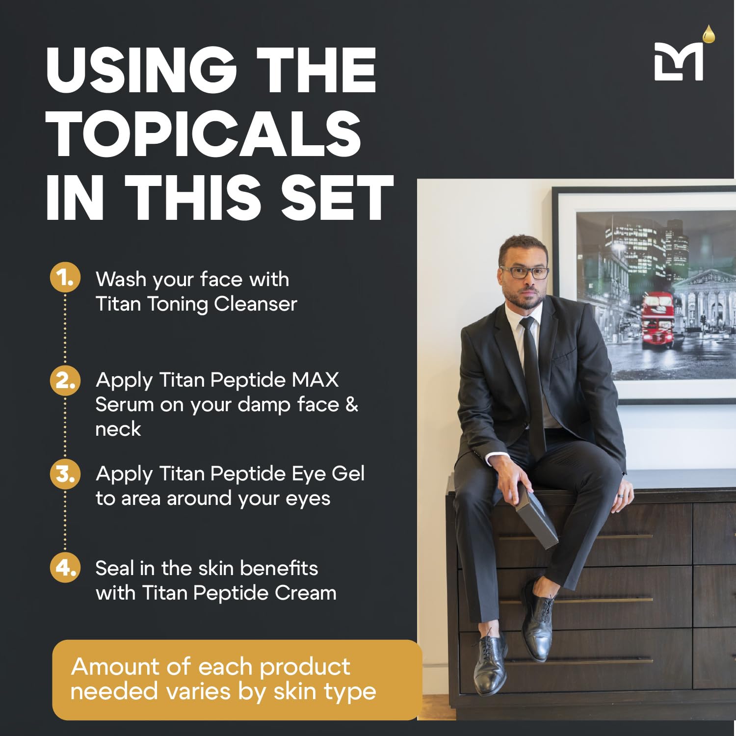 - What Gave Those Actors That Ageless Look: This anti-aging men's skincare set features the Titan Toning Cleanser, Titan Peptide MAX Serum, Titan Peptide Eye Gel, and Titan Peptide Cream; It's the skin care for men behind those 2025 Oscars close-ups