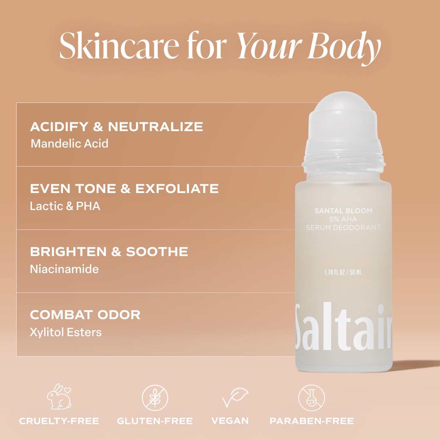 Saltair Serum Deodorant Santal Bloom 2 Pack. 5% AHA Formula. Lactic Acid and Mandelic Acid Deodorant. Aluminum Free Odor Control for Women and Men. Travel Essentials, 2x 1.7oz Roll On