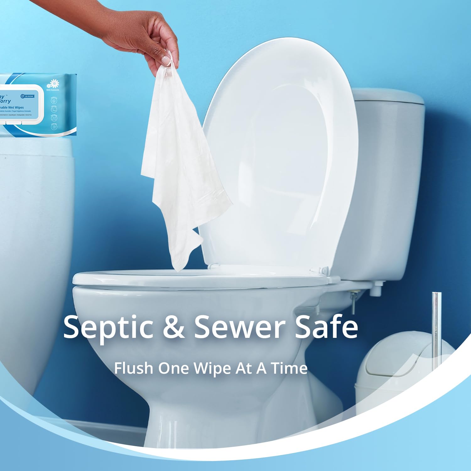 - WORRY-FREE FLUSHING & BIODEGRADABLE: Say goodbye to dry and scratchy toilet paper, WhyWorry butt wipes actually clean your rear end, leaving no remnants behind but only calm, cool and soothe feel. With the help of advanced flushable technology, you can feel confident flushing One Wipe At A Time. Made with 100% plant-based and biodegradable fibers, these wet wipes offer an environmentally conscious clean thatâs safe for sewer and septic systems.