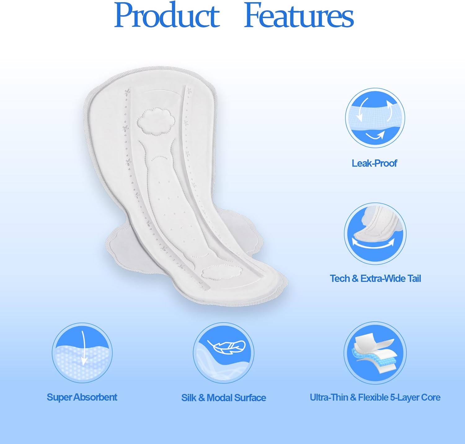 - Enjoy a Worry-Free Period with Modal Women's Pads: Modal daily pads for women are available in 9.5" pads (8, 16, or 32 count), 11.4" pads (6, 12, or 24 count) for daytime use, offering the perfect fit for everyday comfort. Stay fresh, dry, and confident with silky comfort and reliable protection, whether you have a light or heavy flow.ďźAttention: For heavier flow, change pads regularly for optimal comfortďź