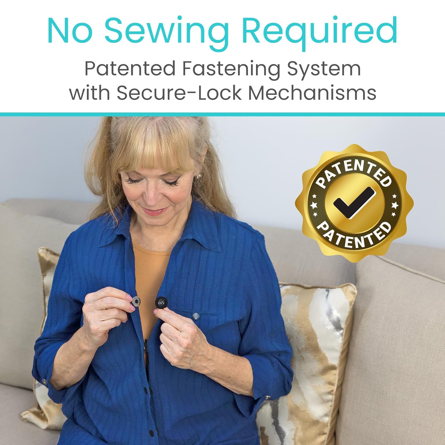 - NO SEWING REQUIRED: The button helper is ready to use, with a streamlined design that allows for seamless integration into your wardrobe. The detailed instructions guide you through the process. With no sewing required, you don’t have to worry about altering or damaging existing buttons or buttonholes. Simply snap these button helpers into place for immediate use.