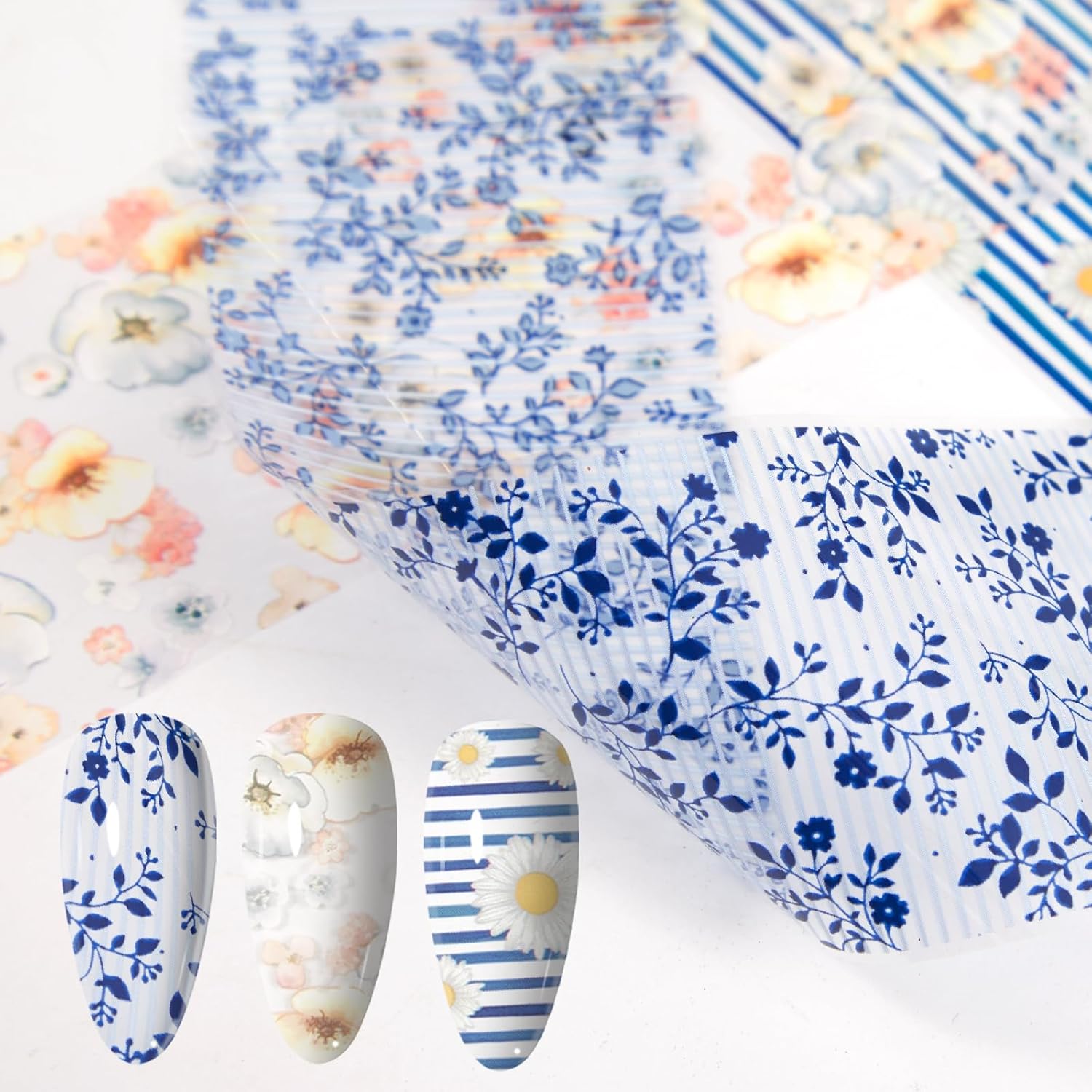 - VERSATILE & FASHIONABLE - Featuring 300 unique, non-repeating designs including floral, rose, solid and marble patterns, size about 1.5 x 7.8 inches / 4 x 20 cm, one sticker is enough to make 10 nails, this nail foil sticker set offers endless possibilities for creating trendy and personalized nail art.