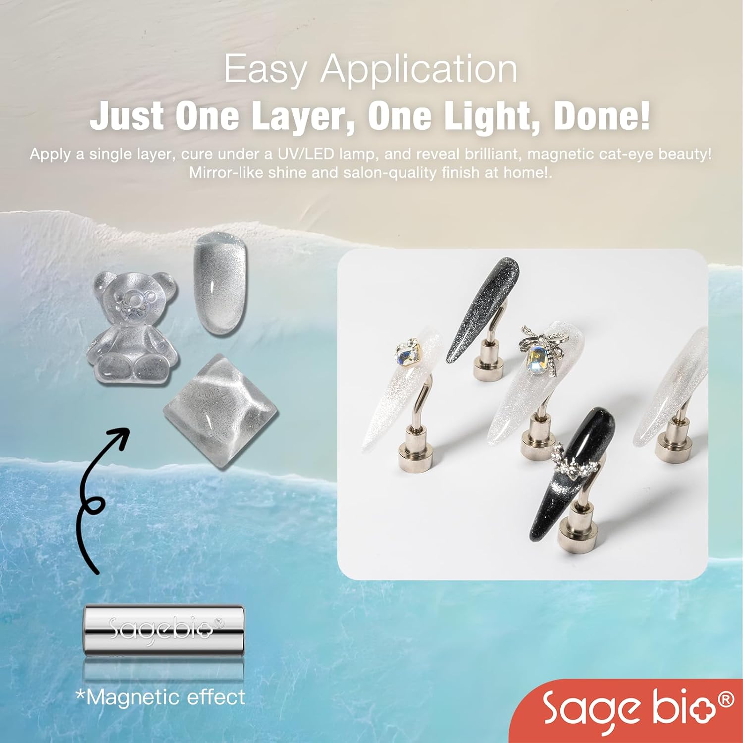 - Multifunctional Formula: SAGEBIOâs Cat Eye Gel Nail Polish combines both the base and color in one easy-to-use formula. No need for additional base or top coats, streamlining your nail art routine.