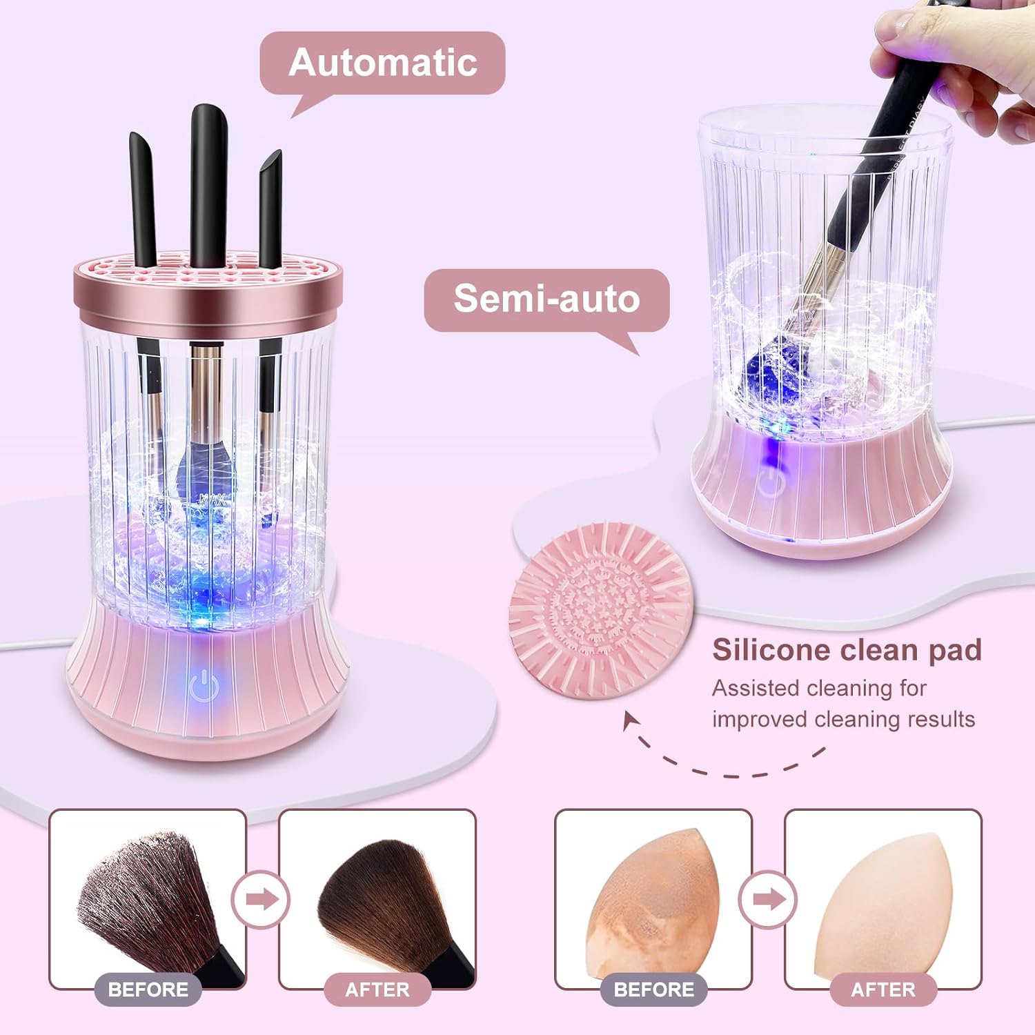 - High-Speed Rotation: With a powerful 7000RPM motor, the brush cleaner delivers high-speed 360-degree rotation, thoroughly removing dirt, oil, and makeup residue from your brushes.