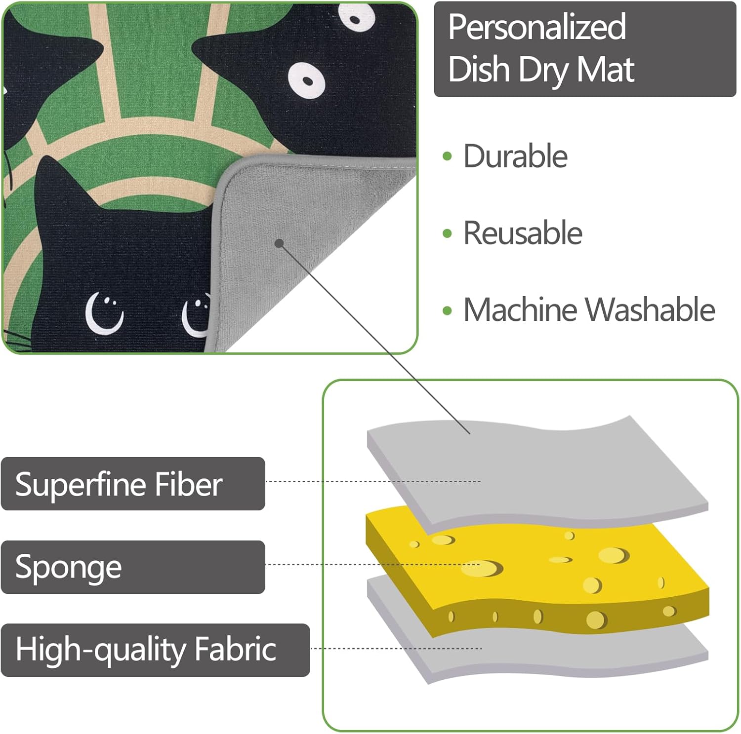 - đ CREATIVITY AND STRONG ABSORPTION: can't stand wet dishes and dry mats? Buy one of our dish mat drying kitchen mat. microfiber dish drying mat, the surface can quickly absorb water 2-4 times its own weight. Help your crockery and tableware dry faster and more hygienically, and keep the table completely dry