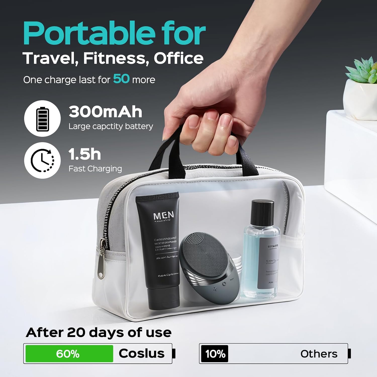 - Waterproof and Travel-Ready for Active Lifestyles: Built with an IPX7 waterproof rating, the COSLUS face scrubber is safe to use in the shower or at the sink. Its compact and cordless design fits easily in your gym bag or carry-on, making it the ideal companion for frequent travelers, business professionals, or backpackers on the go. Whether you're prepping your skin before a meeting or refreshing it after a long flight, this portable Face Scrubber supports consistent deep cleansing and massage benefits, helping your skin stay refreshed anywhereâeven on the road