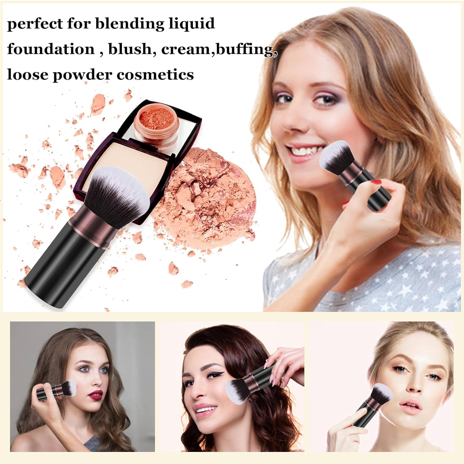 - Multi-Purpose: This kabuki brushes perfect for blending liquid foundation , sunscreen, blush, cream, self tanner, buffing, stippling, concealer, bronzer, loose powder cosmetics, help to create a natural-looking coverage on every part of the face.